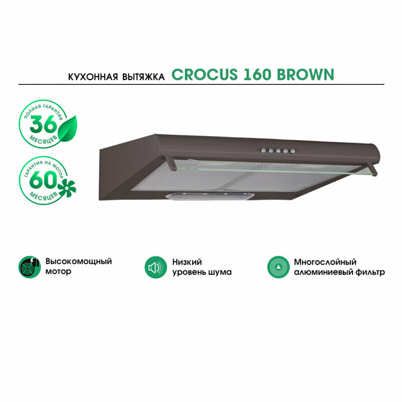Кухонная вытяжка подвесная CROCUS 160 BROWN/60 см/производительность 650м3/ч, низкий уровень шума.