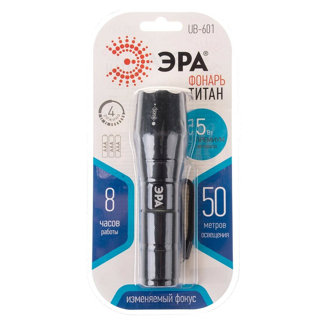 ЭРА Фонарь UB-601 универсальный ""Титан""5Вт, 3хААА, алюминий, изменяемый фокус, бл Б0027825 .