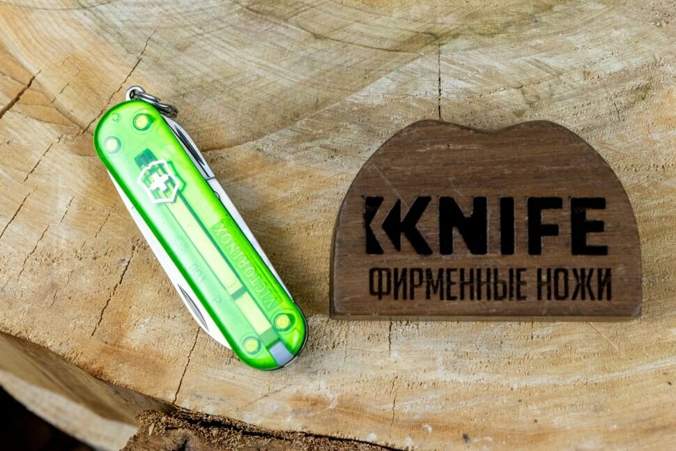 Нож-брелок VICTORINOX Classic SD Colors "Green Tea", 58 мм, 7 функций, полупрозрачный зелёный
