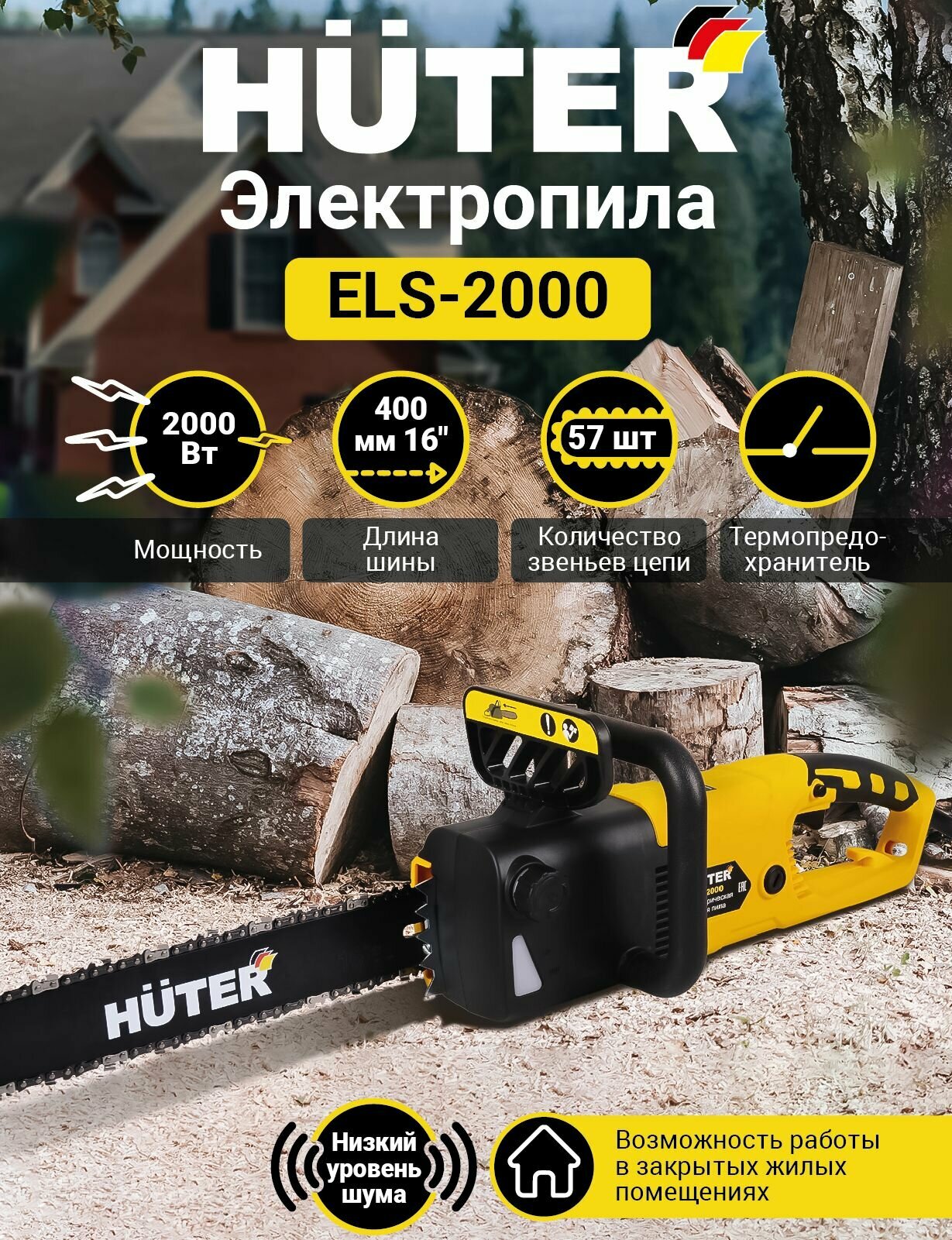 Купить Пила цепная электрическая ELS-2000 Huter / 2000 Вт / электропила для дома дачи и сада
