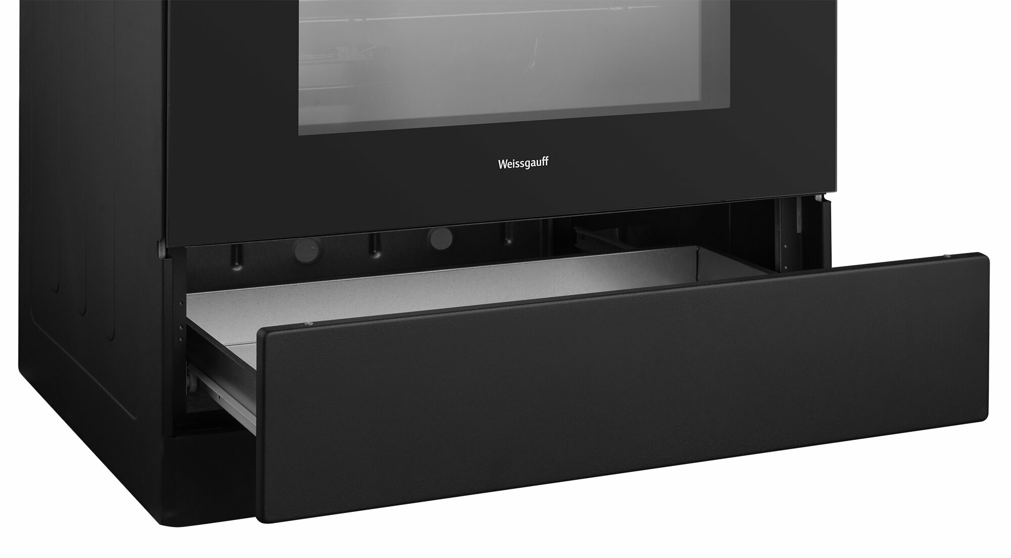 Электрическая плита Weissgauff WES E12V15 BE 3 года гарантии, 3 года гарантии, Объем 60 литров, гриль, Конвекция, Термостат духового шкафа