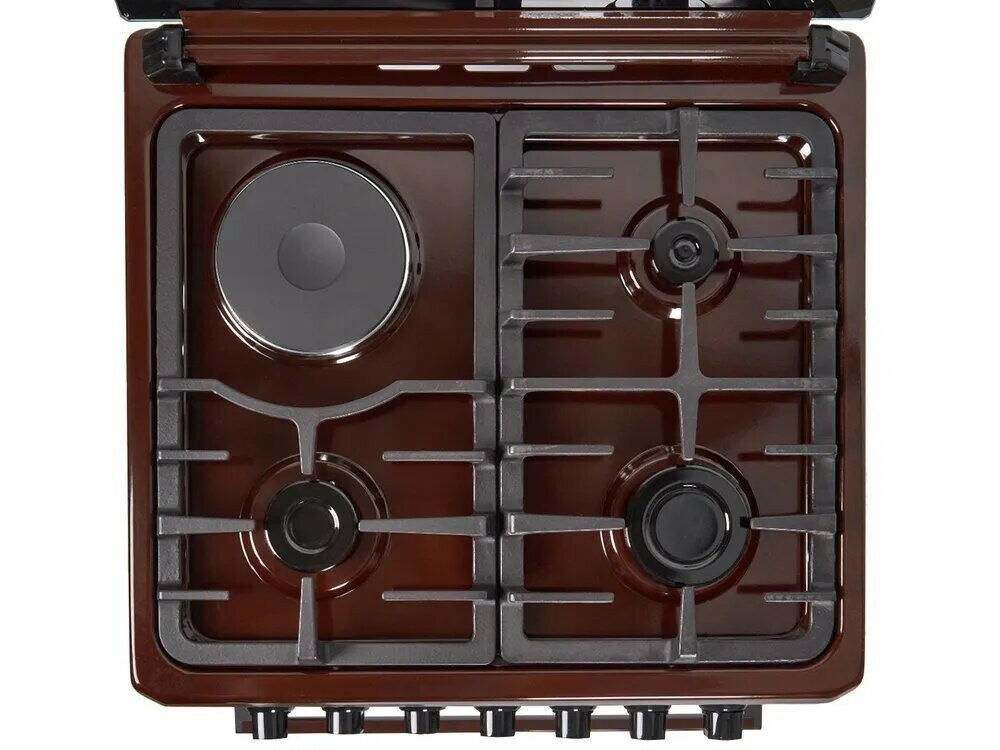 | Плюсы: | комбинация из электрической и газовой комфорок, духовка вместительная. два противня в комплекте. В комплекте форсунки под баллонный газ. |