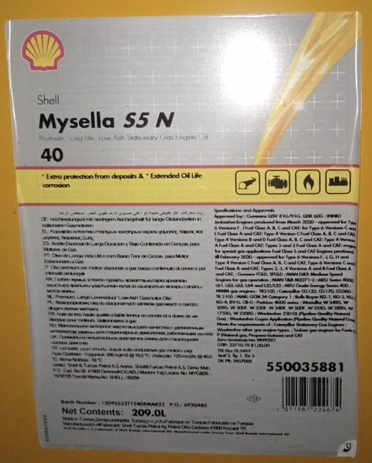 Масло для газовых двигателей Shell Mysella S5 N 40 209 л интересное:
