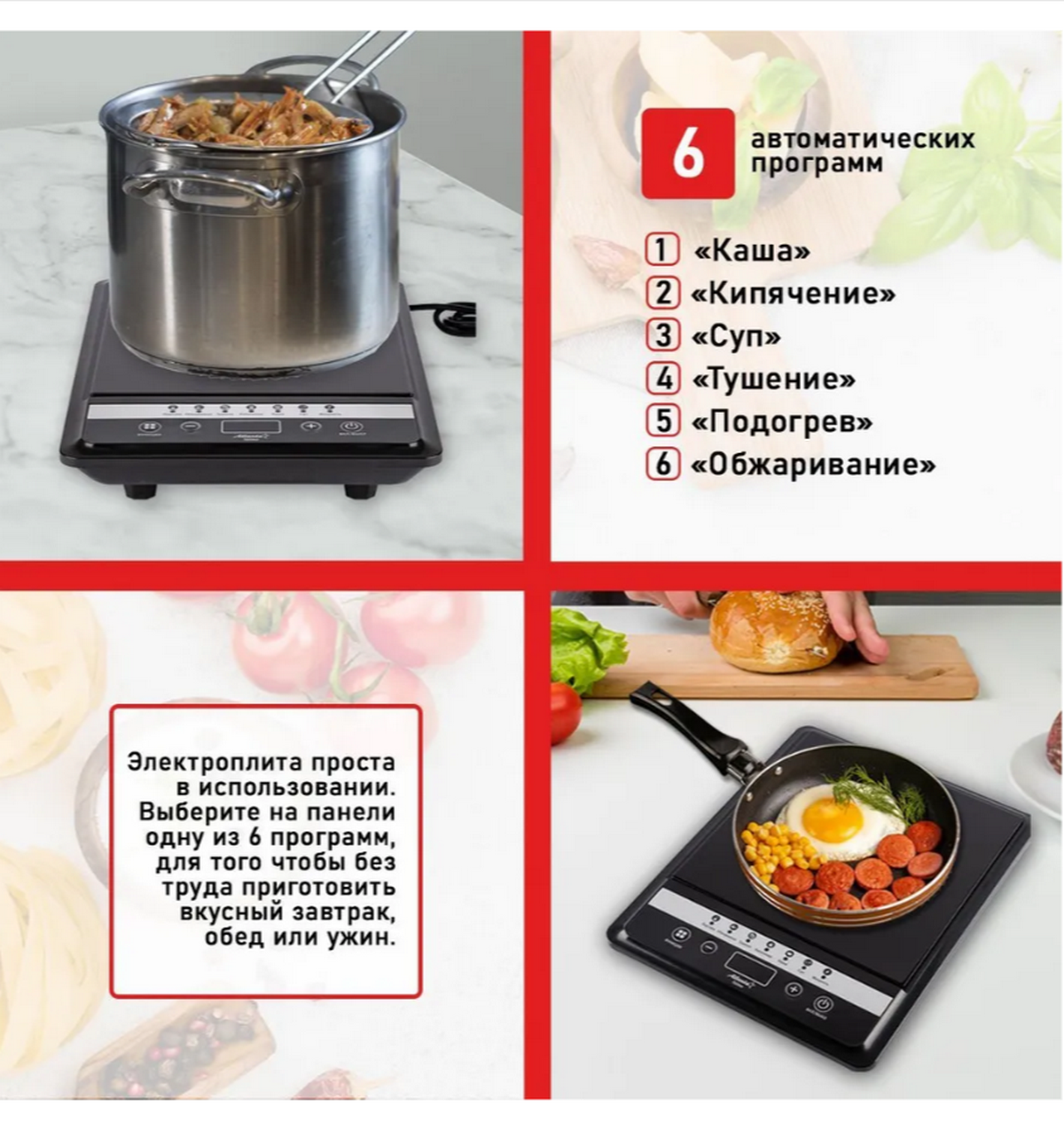 Индукционная настольная плита Atlanta ATH-1756 (black) интересное: