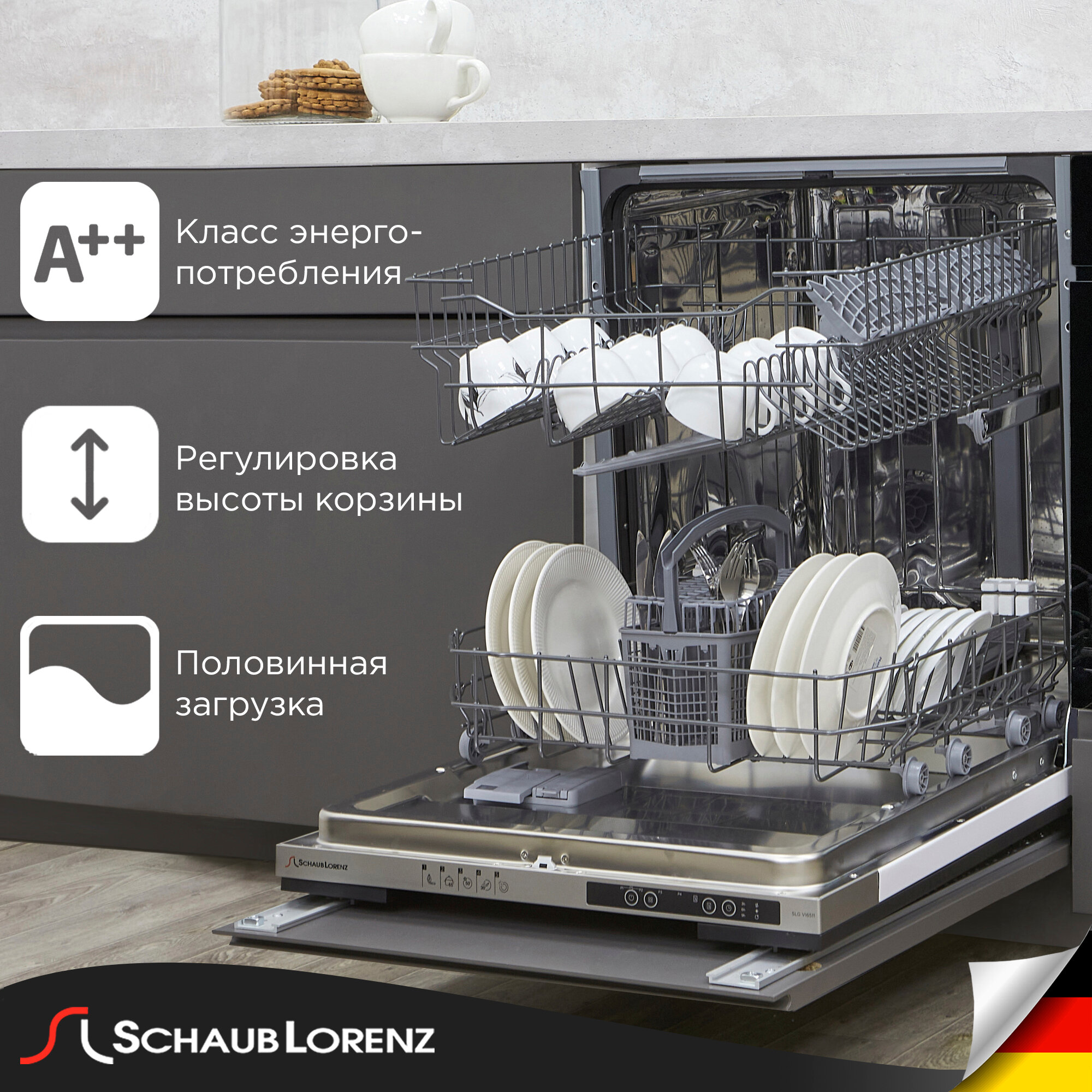 Купить Посудомоечная машина встраиваемая Schaub Lorenz SLG VI6511, 60 см, 12 комплектов, 5 программ, Блок активной сушки