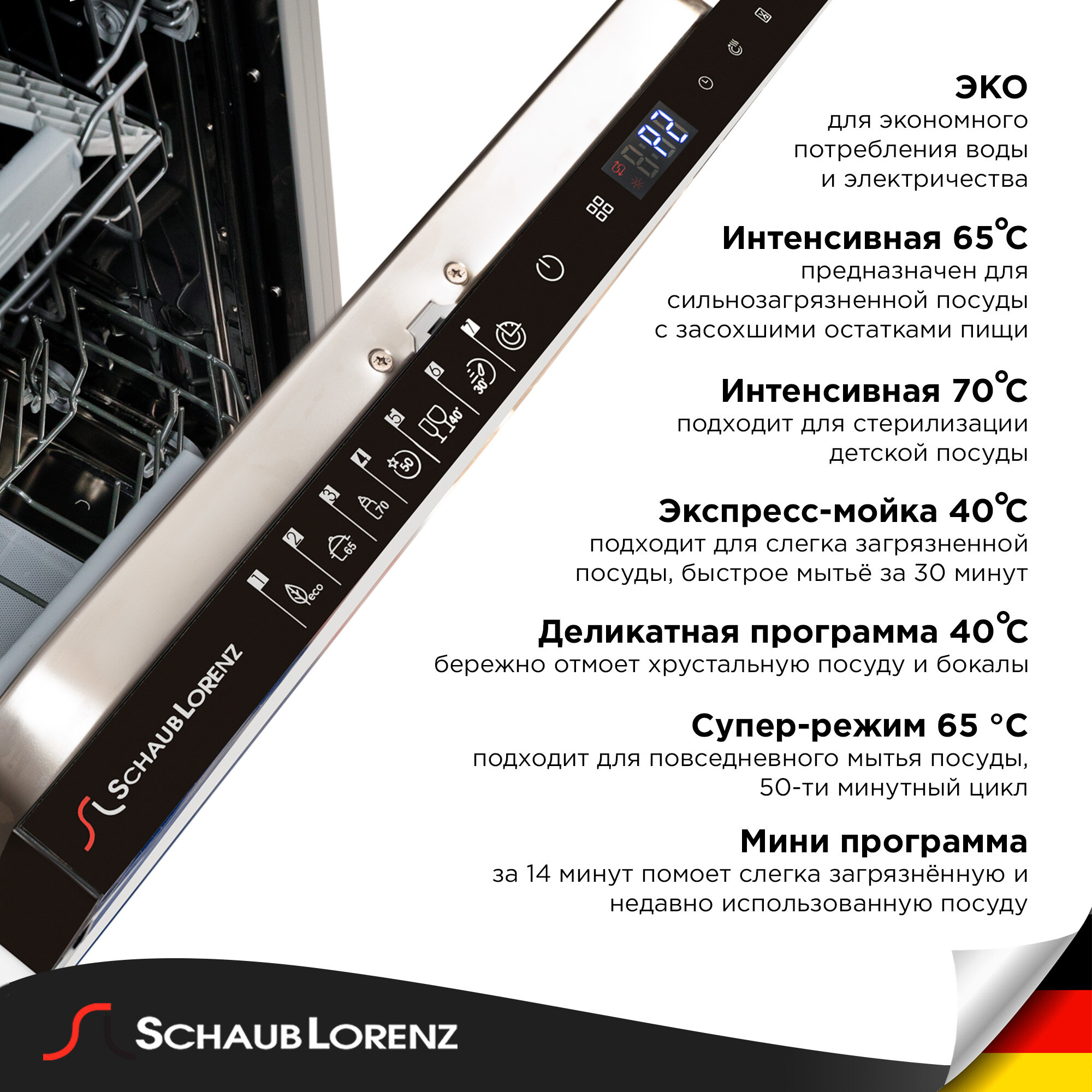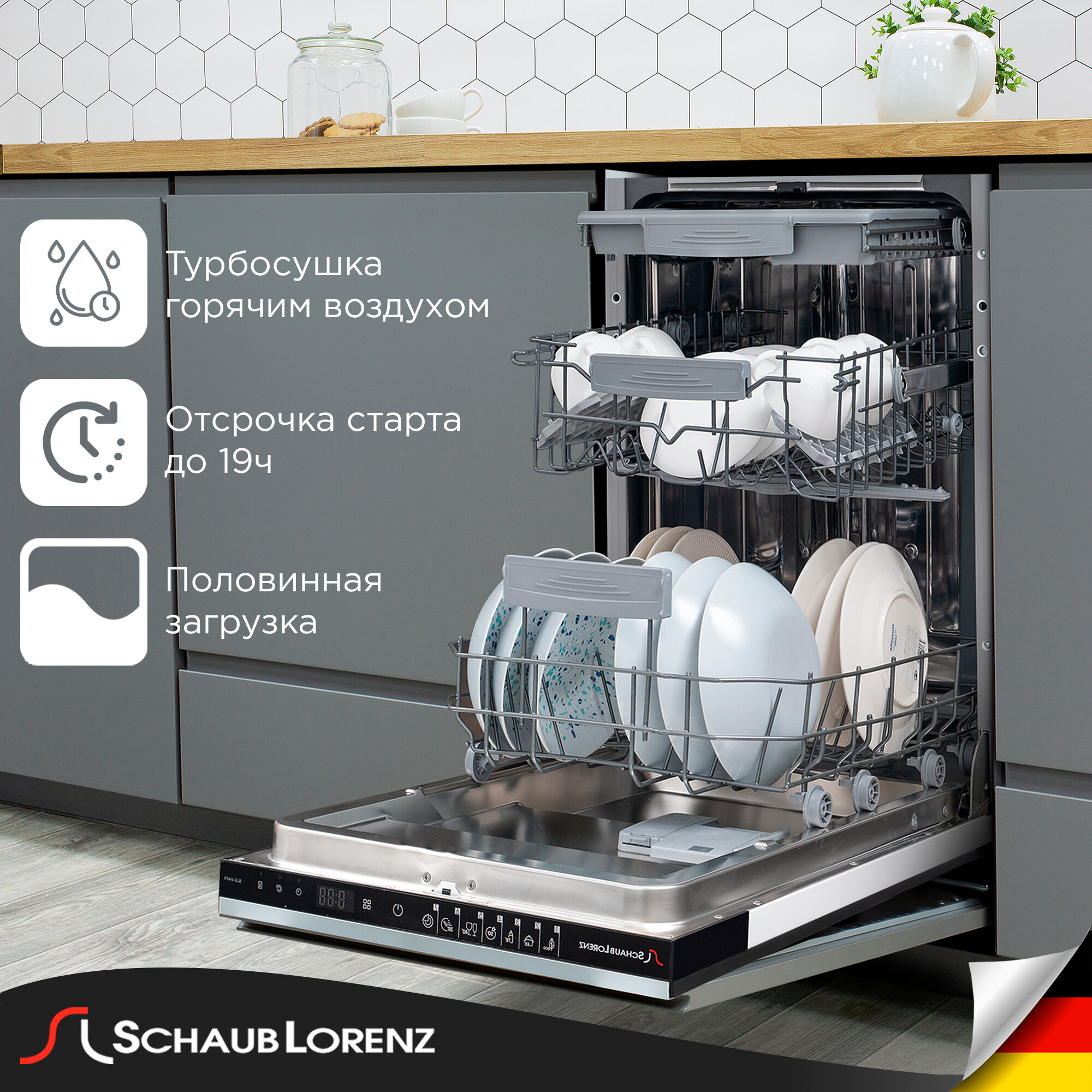 Посудомоечная машина Schaub Lorenz SLG VI4711, 45 см, половинная загрузка, турбо-сушка, LED-индикация, AQUASTOP интересное: