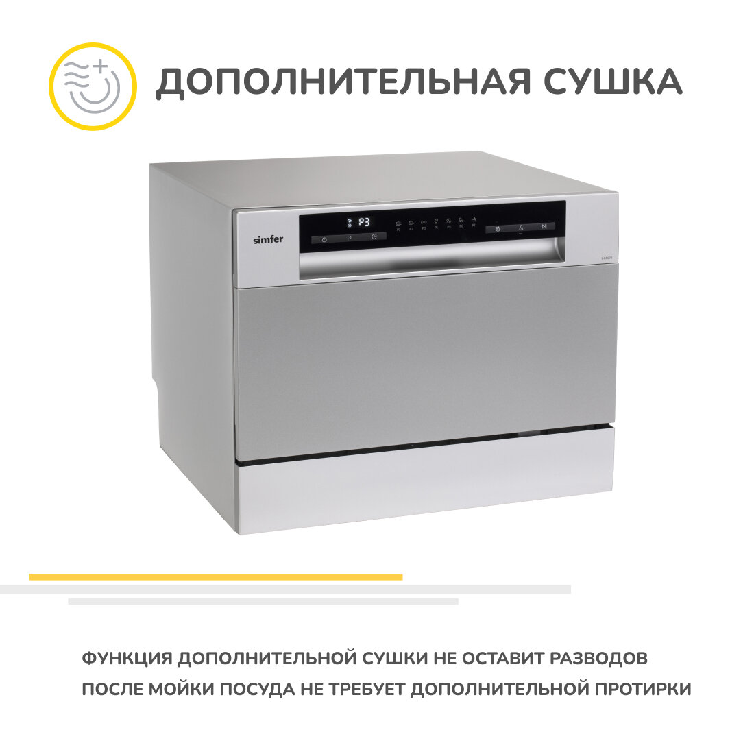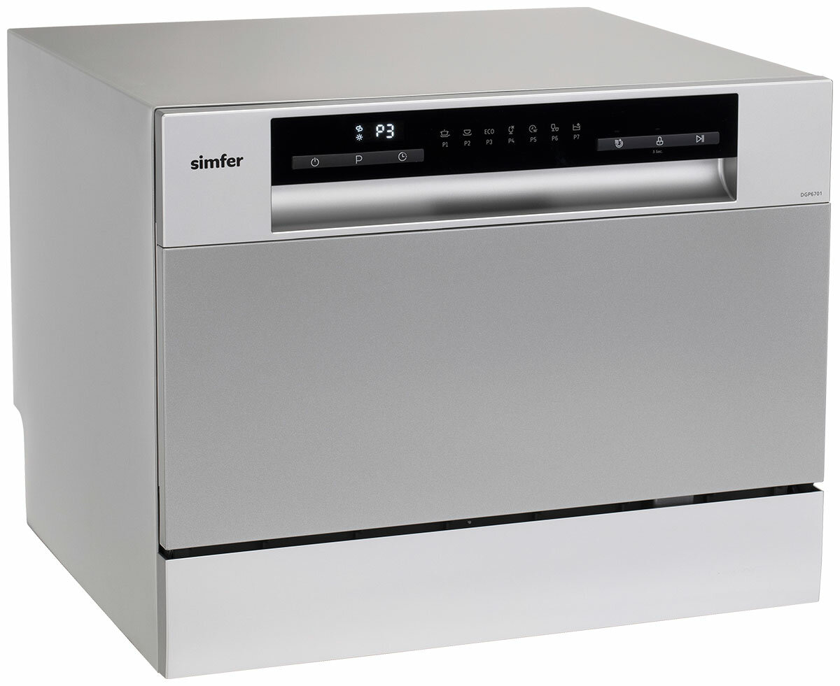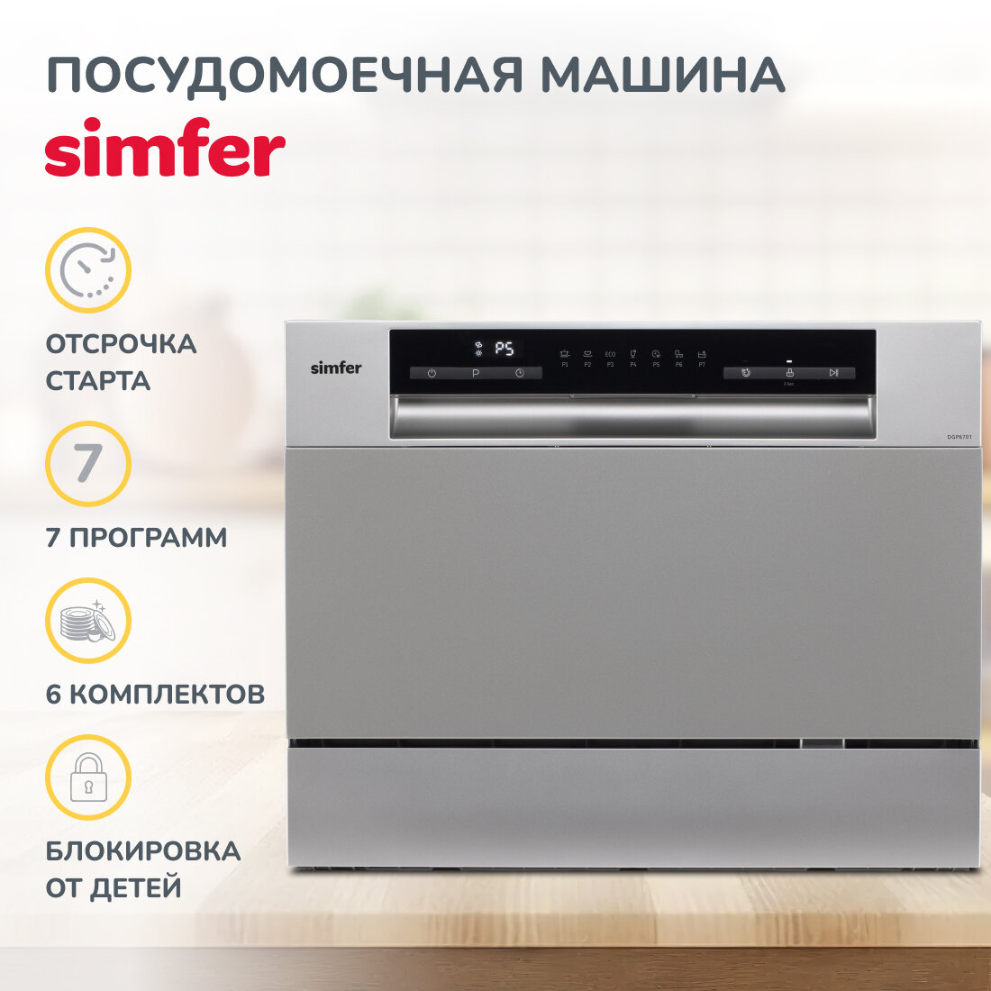 Настольная посудомоечная машина Simfer , 6 комплектов , 7 программ , отсрочка старта , блокировка от детей