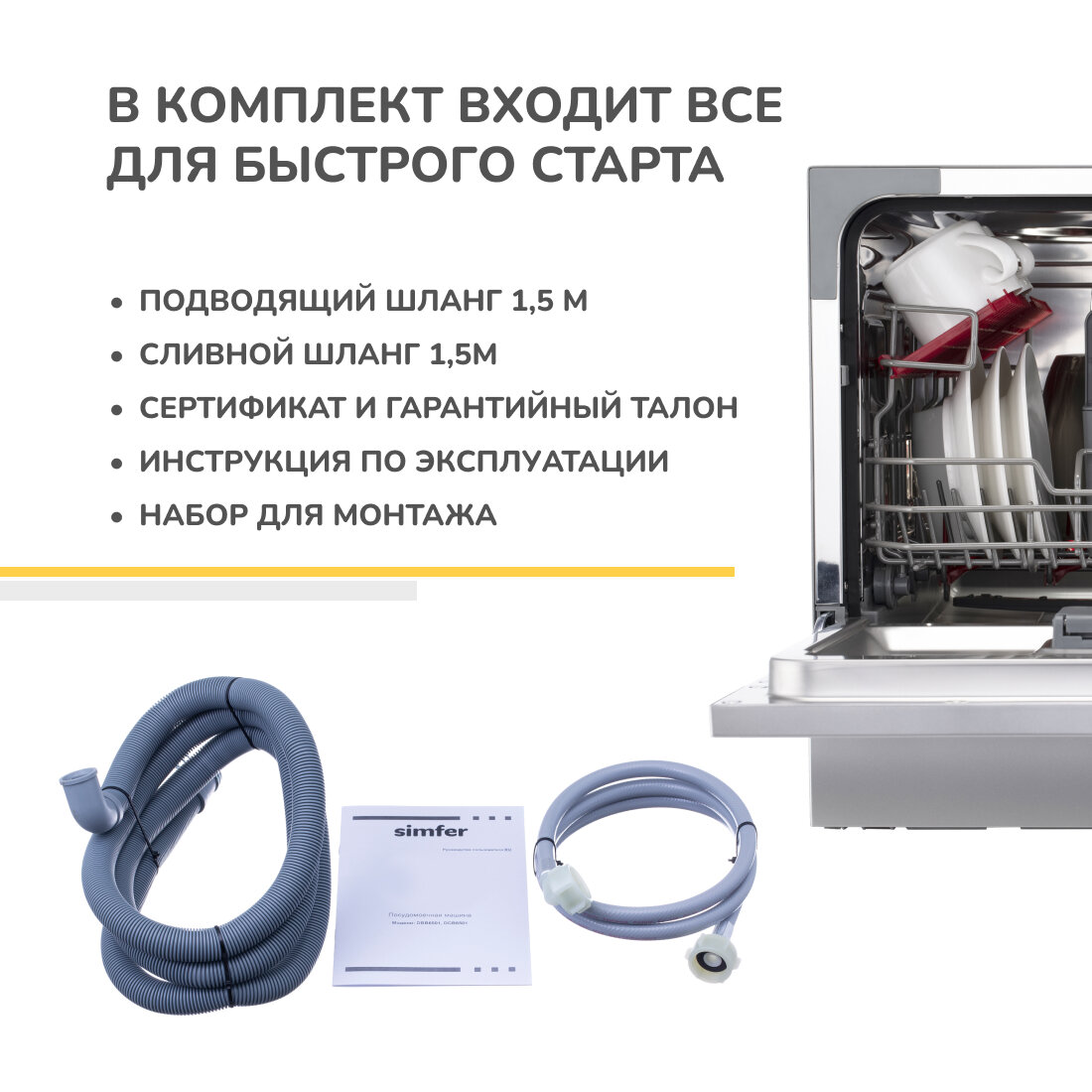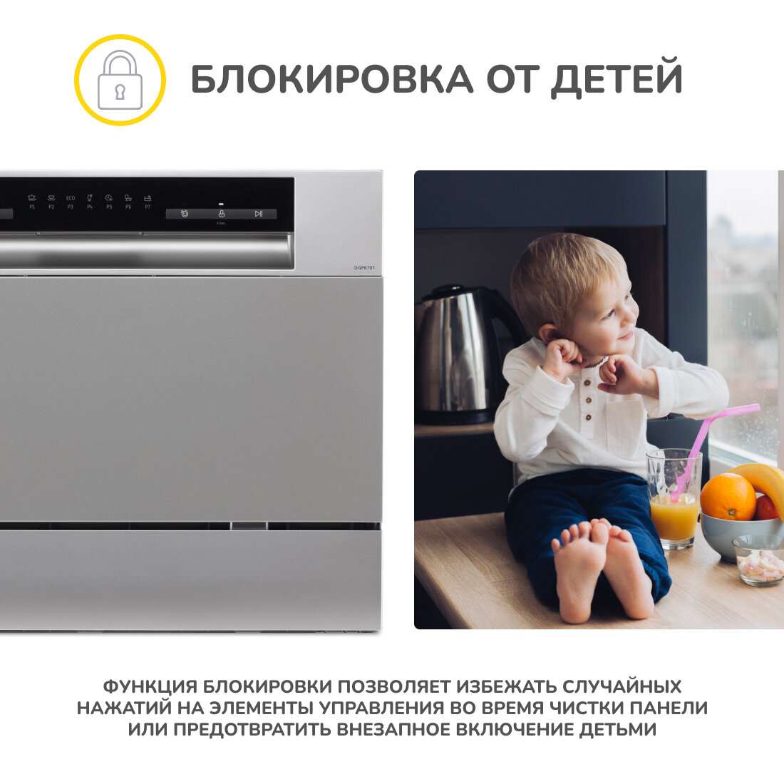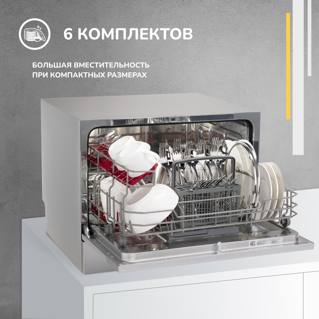 Настольная посудомоечная машина Simfer , 6 комплектов , 7 программ , отсрочка старта , блокировка от детей