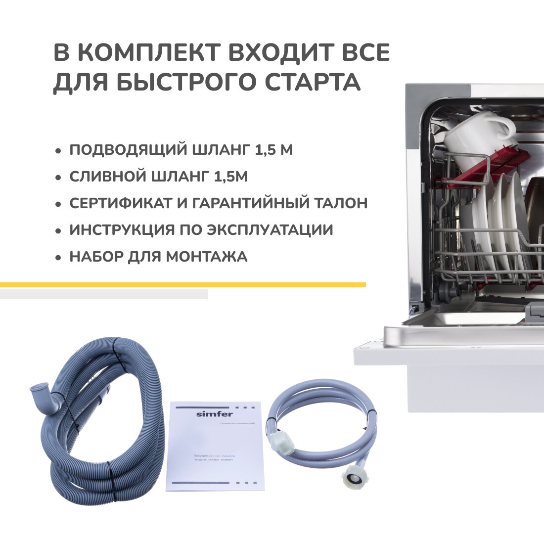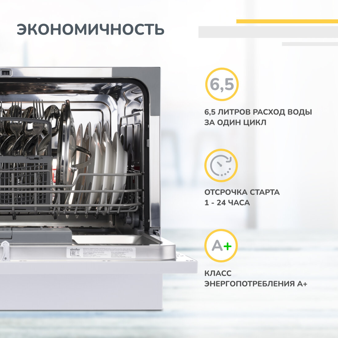 Настольная посудомоечная машина Simfer , 6 комплектов , 7 программ , отсрочка старта , блокировка от детей