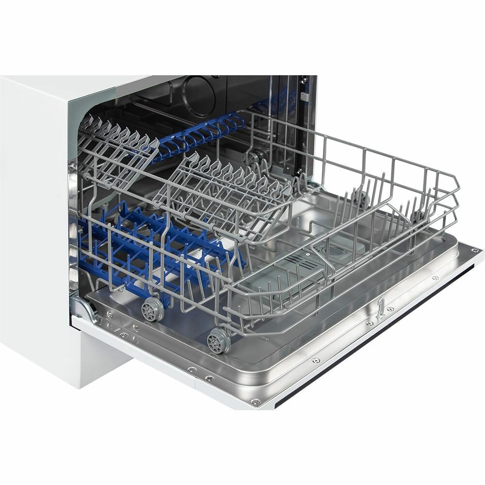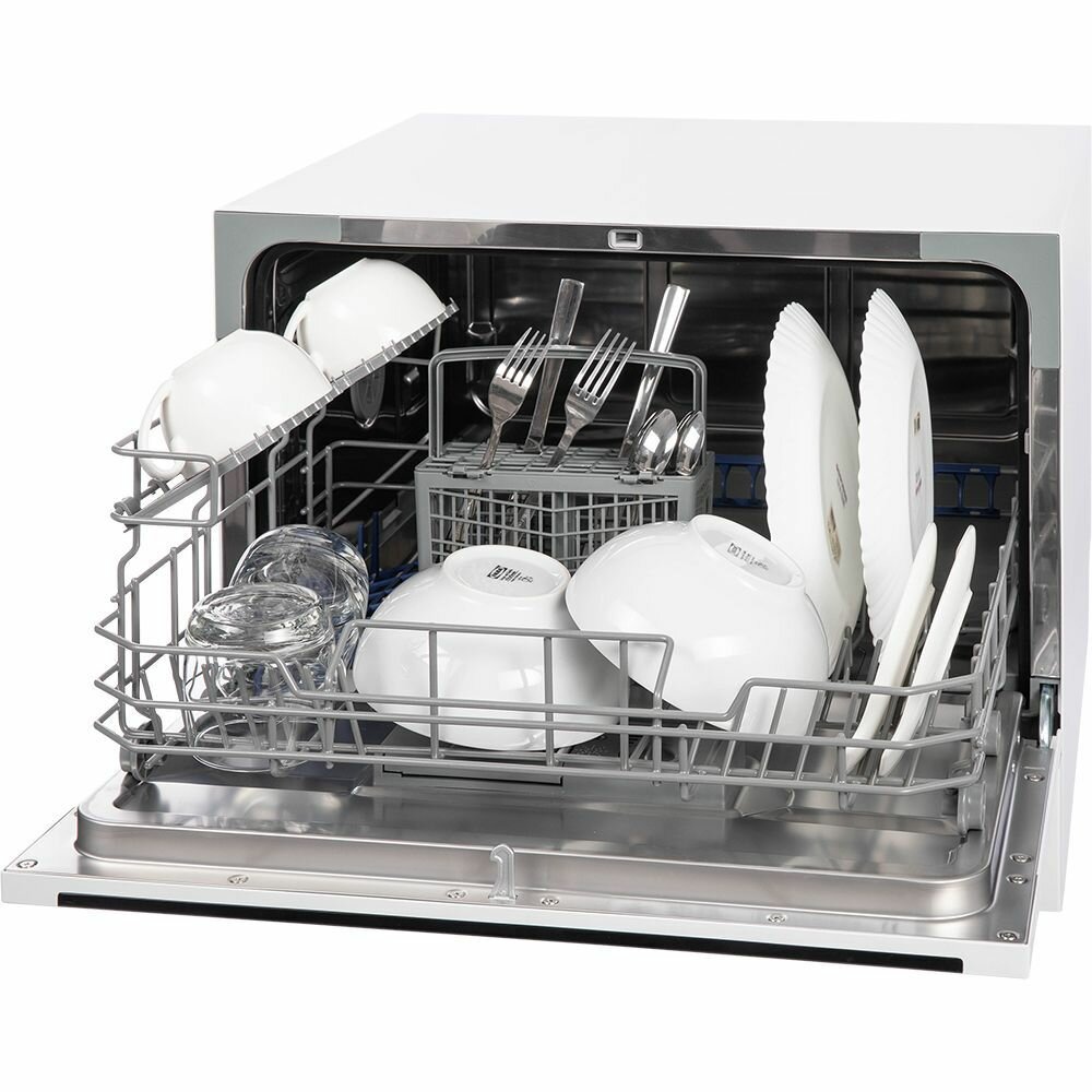 Купить Посудомоечная машина HIBERG T56 615 W, отдельностоящая, возможность встраивания, mini, 7 программ, 2 корзины, цвет белый