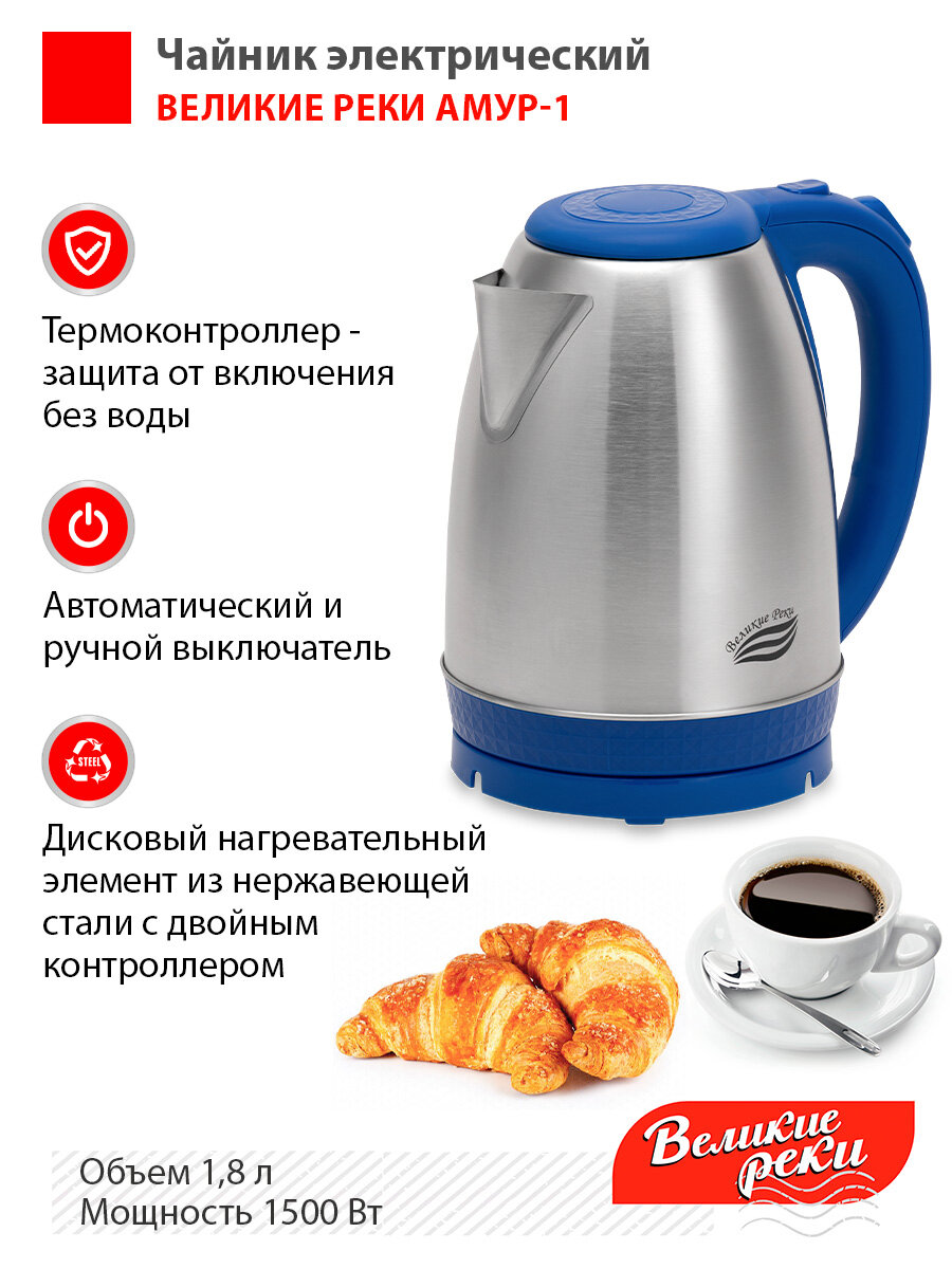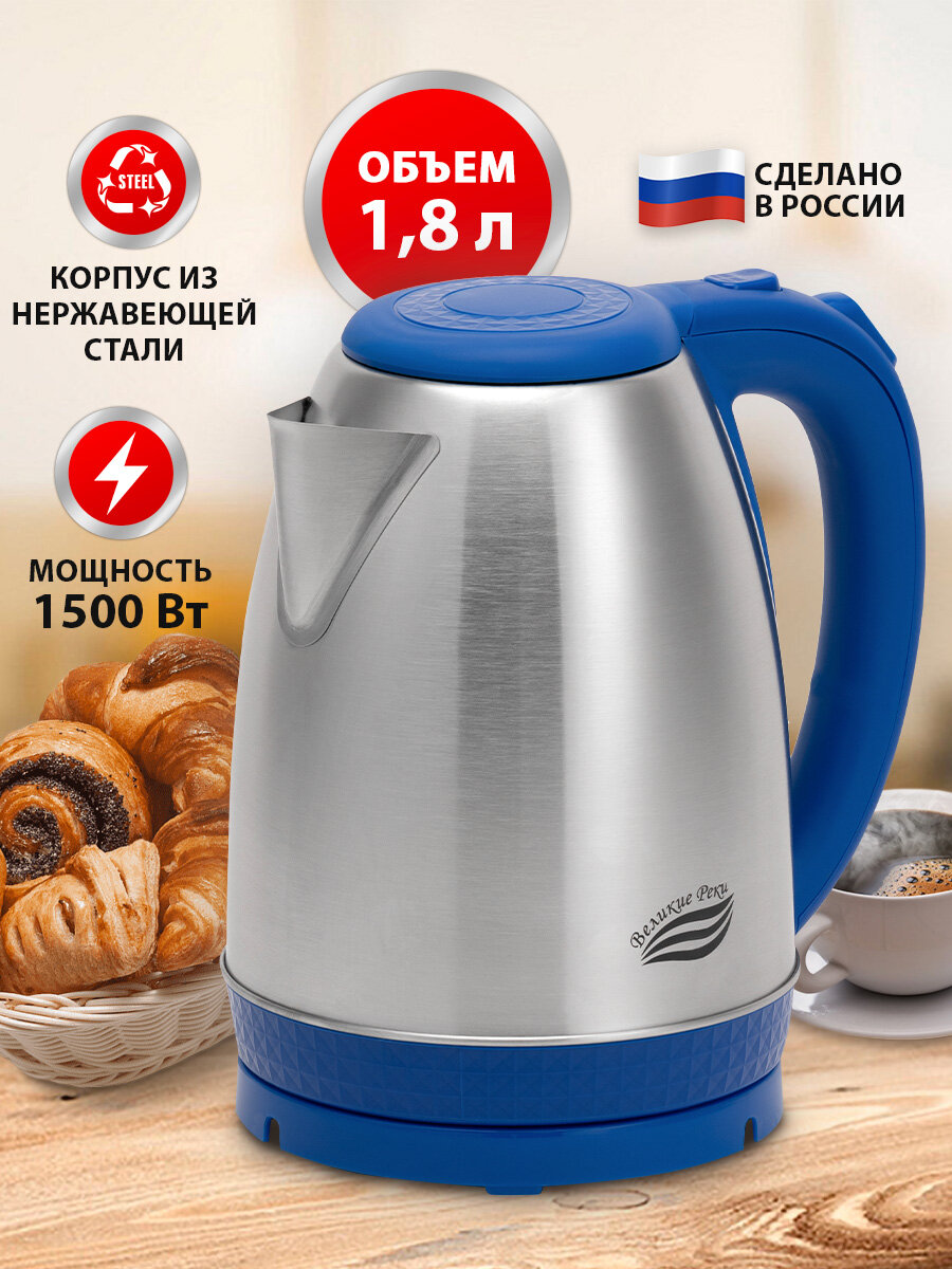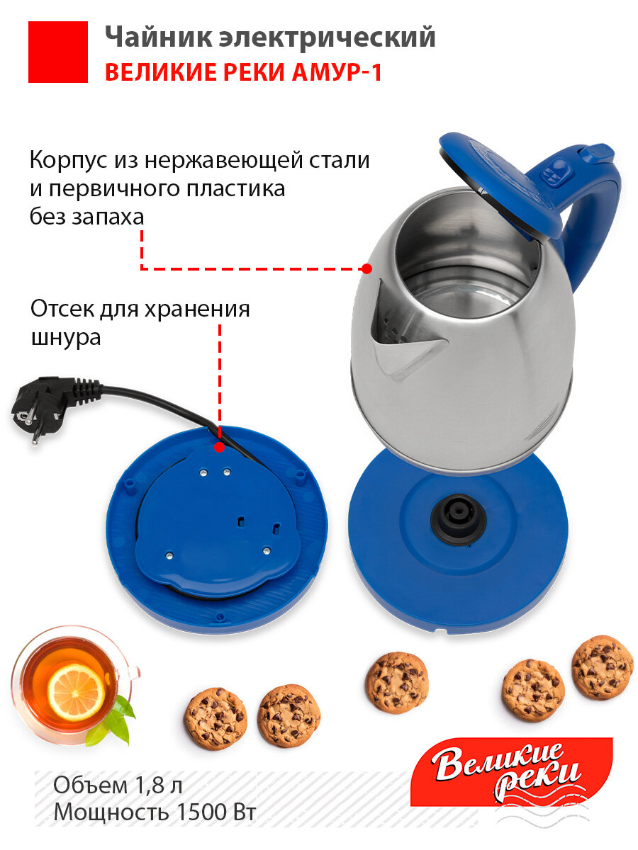 Купить Чайник электрический Великие реки Амур-1 синий, 1,8л, нержавейка