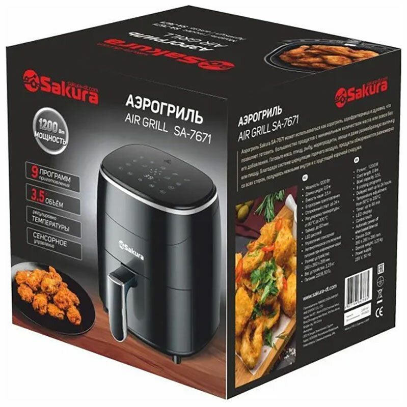 Аэрогриль Sakura SA-7671, 3.5 л, 60 мин таймер интересное:
