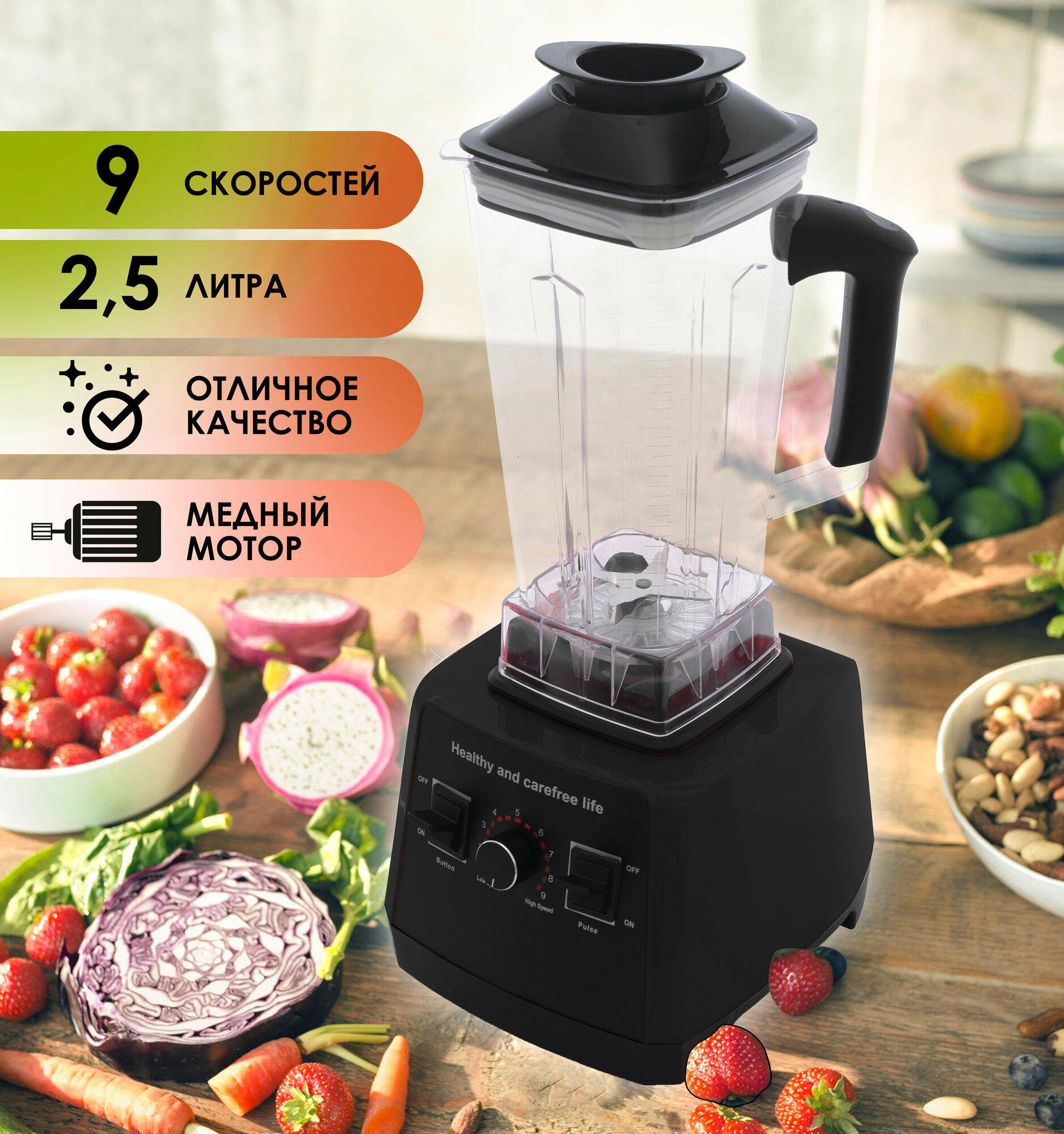Блендер домашний/стационарный/измельчитель льда/для смузи/кофемолка/5000 Вт,кувшин 2.5 литра,импульсный режим,9 скорости работы,черный интересное: