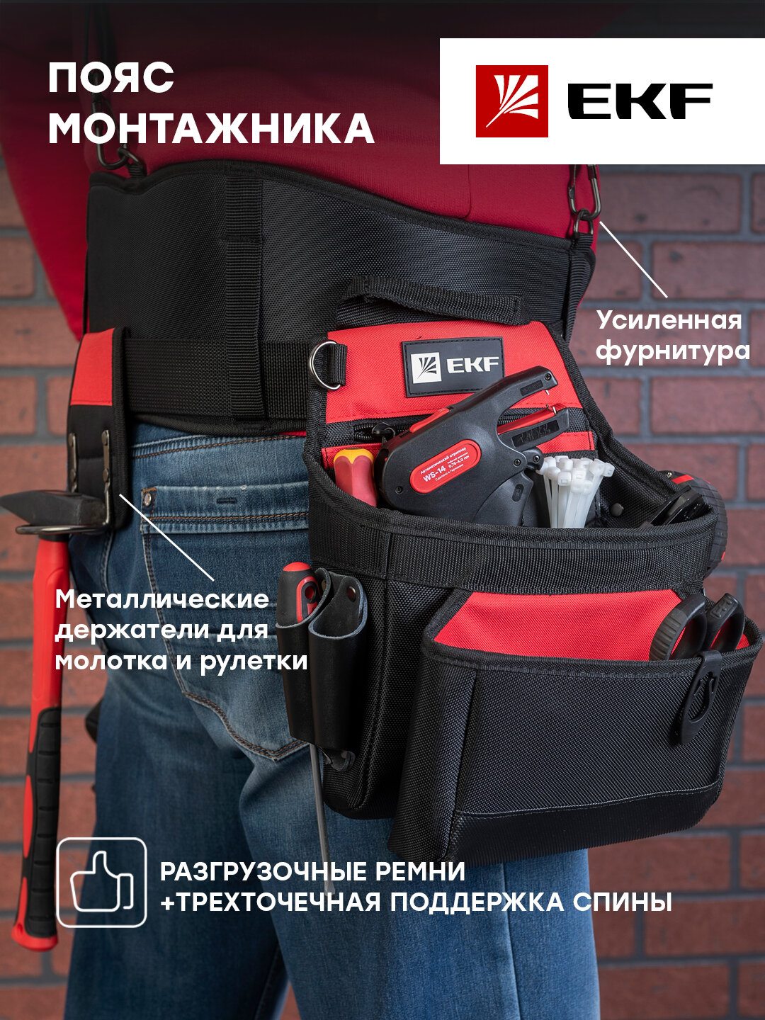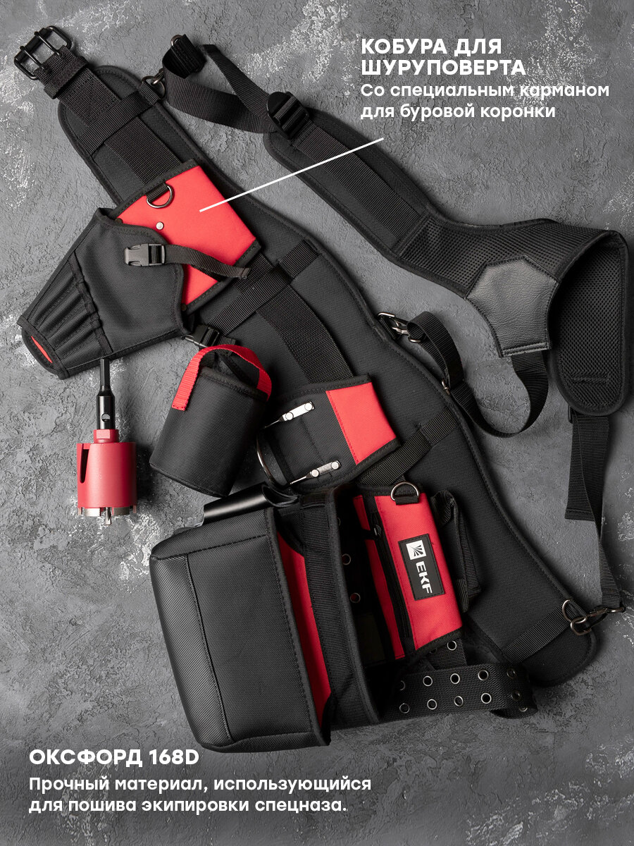 Пояс монтажника с 3 сумками и разгрузочными ремнями С-15 EKF Professional интересное: