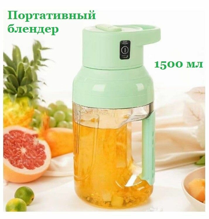 Портативный блендер, миксер для приготовления сока, коктейлей емкостью 1500 мл зеленый интересное: