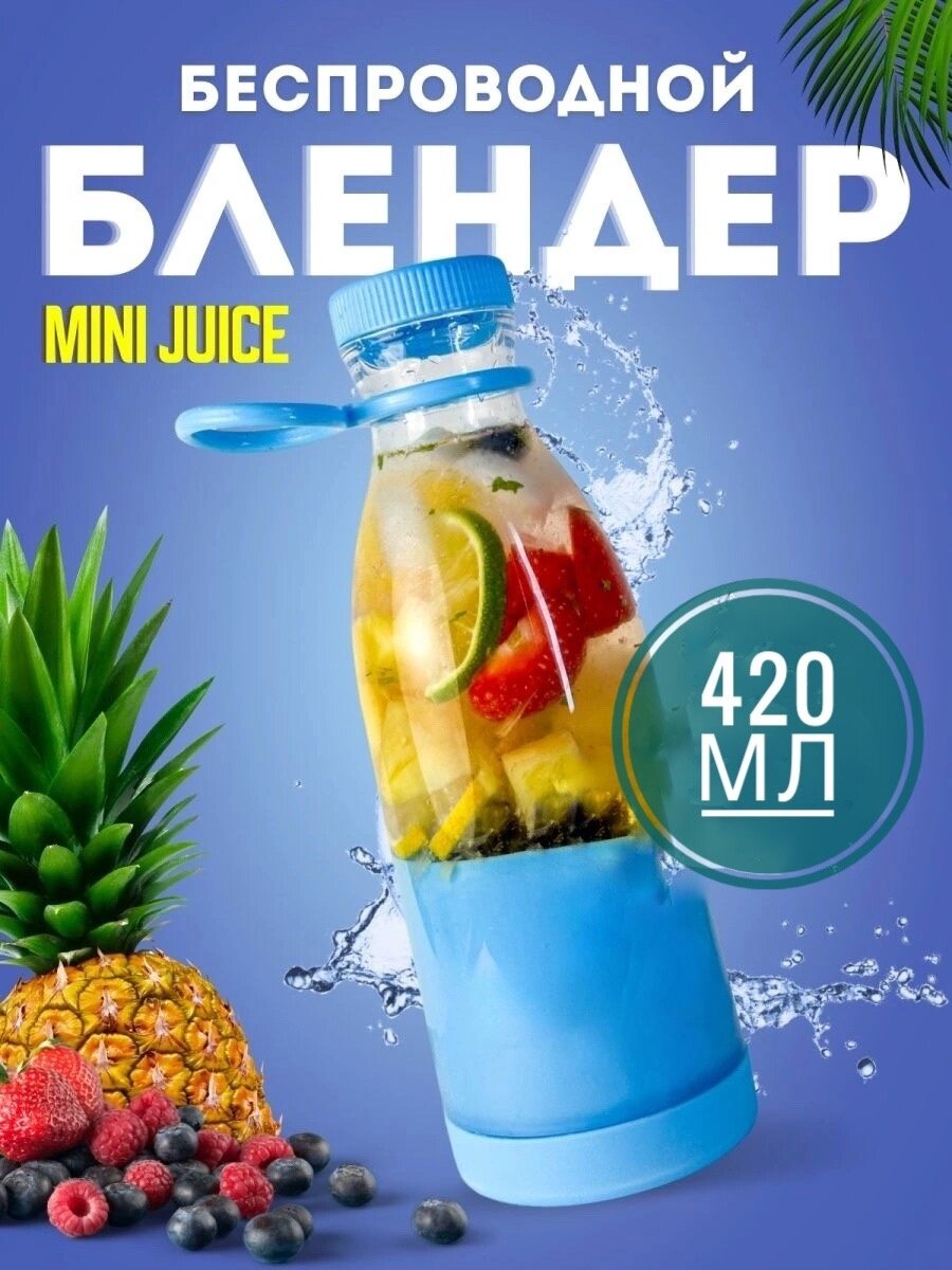 Беспроводной портативный USB блендер для смузи MINI JUICE 420 мл, голубой интересное: