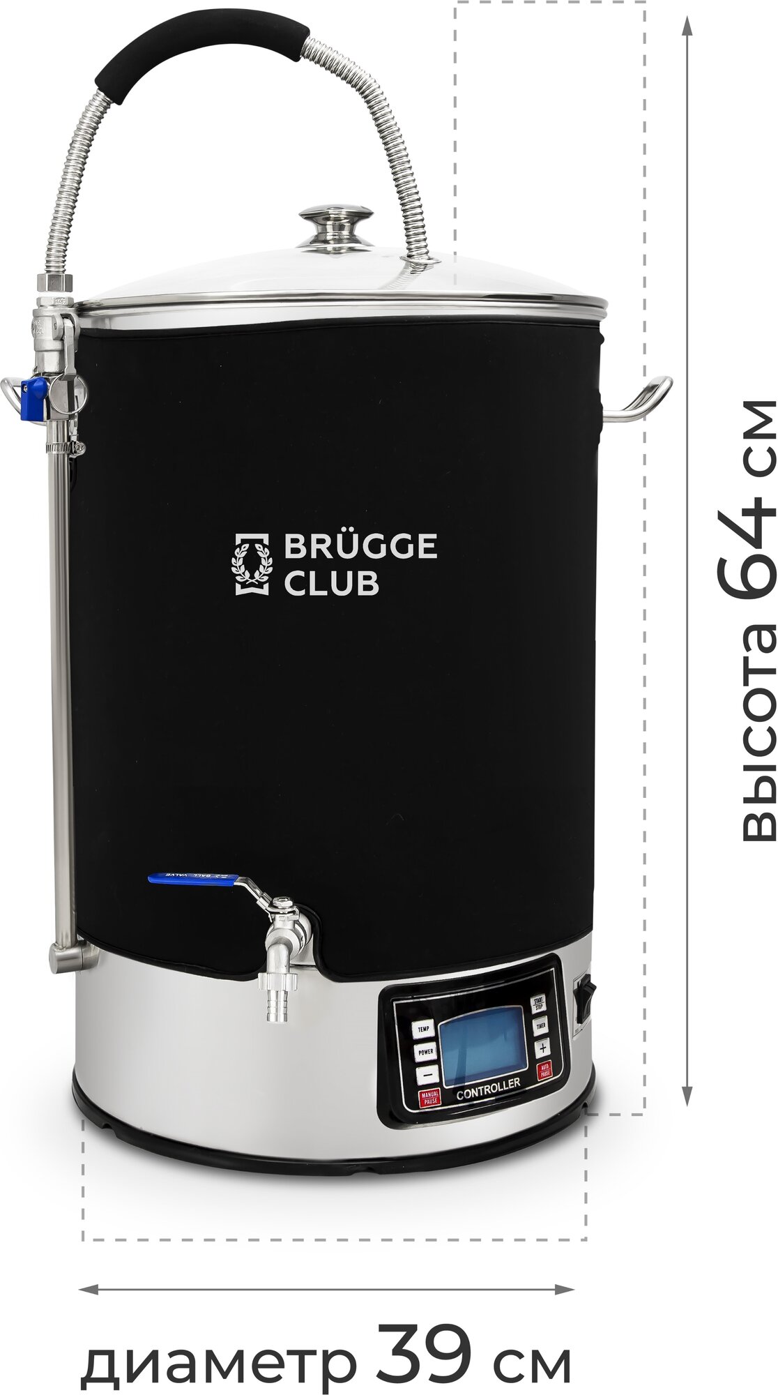 | Дополнительная информация | заторный бак на 5-7 кг солода, программируемый блок управления, съемное дно, встроенный насос и ТЭН, чиллер |