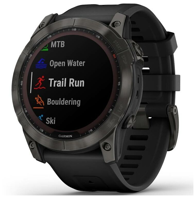 Спортивные часы Fenix 7X Sapphire Solar, смарт часы с GPS-приемником, с титановым безелем с DLC покрытием и силиконовым ремешком Garmin 010-02541-23