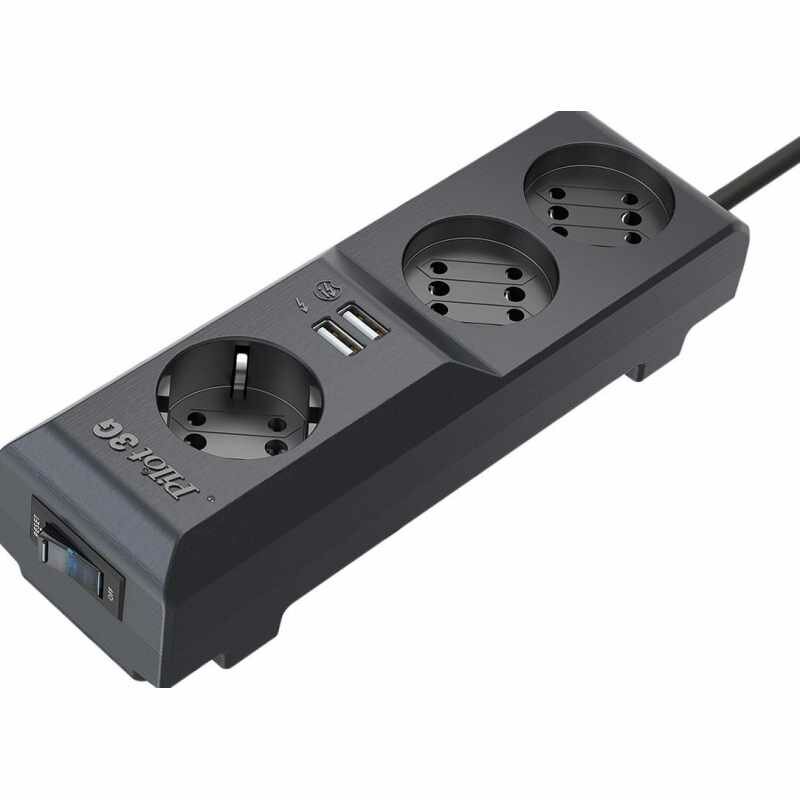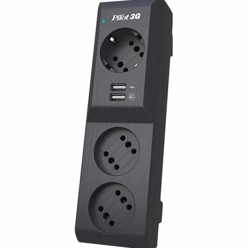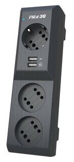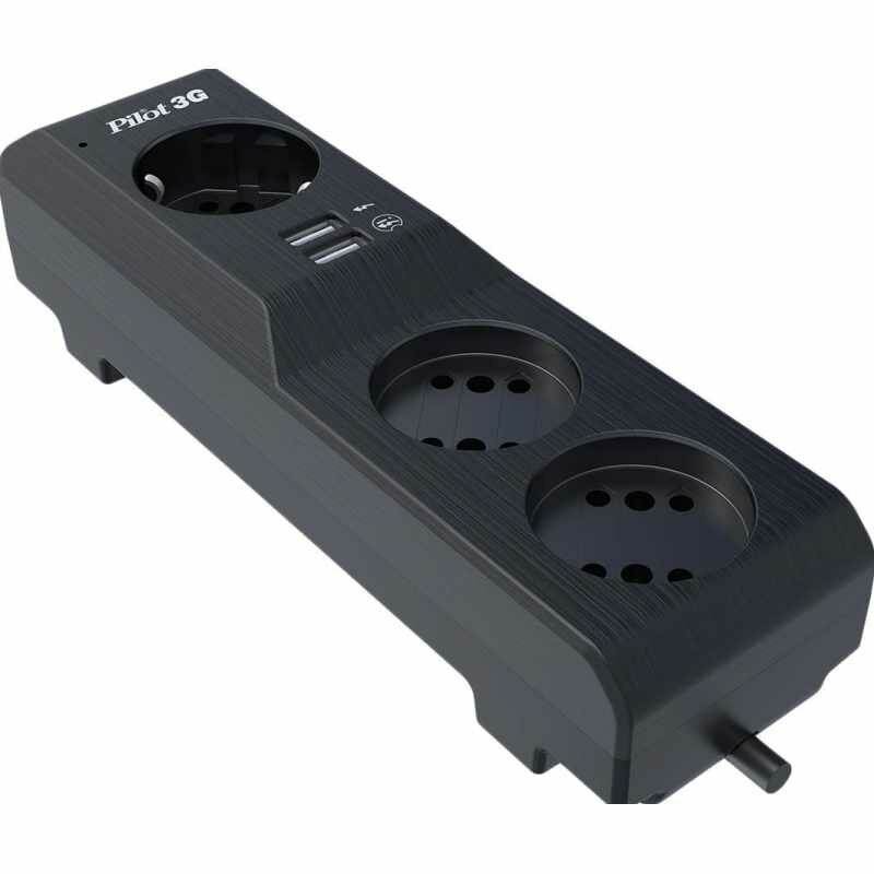Сетевой фильтр Pilot 3G 5 метров, черный, 3 розетки, 2 USB