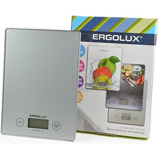ELX-SK02-С03 серые металлик (весы кухонные до 5 кг, 195*142 мм), ERGOLUX ELX-SK02-C03 (1 шт.)
