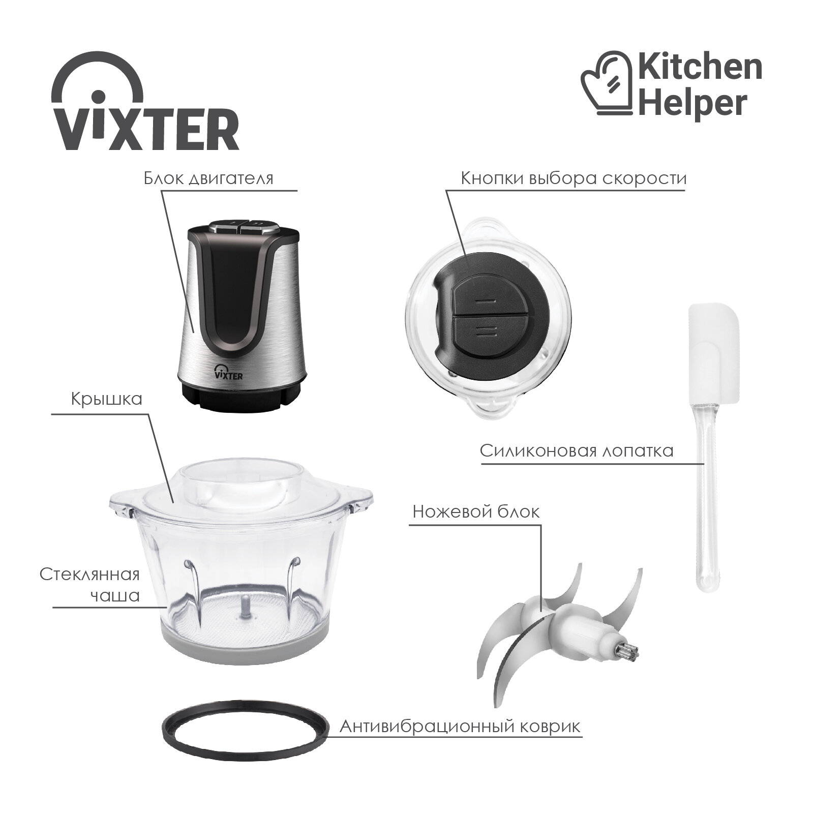 Измельчитель кухонный электрический VIXTER HCW-4060 стеклянная чаша, 2 литра, лопатка в комплекте