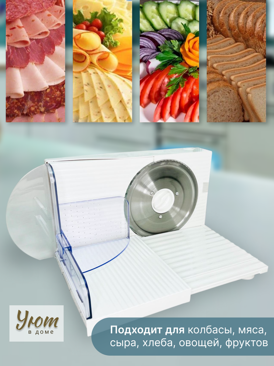 Ломтерезка, ломтерезка электрическая, слайсер для нарезки, 1 скорость работы, 150Вт, регулировка толщены нарезки