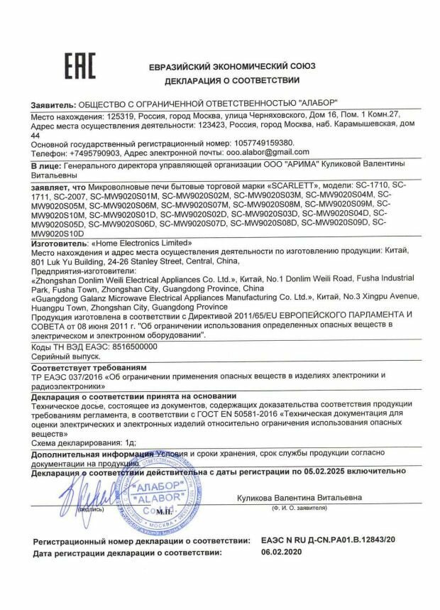 Микроволновая печь Scarlett SC-MW9020S08D интересное: