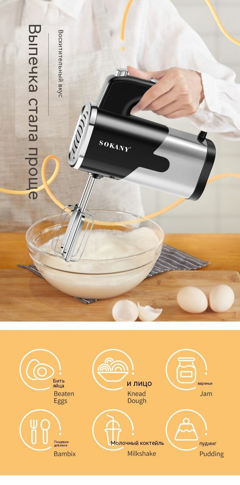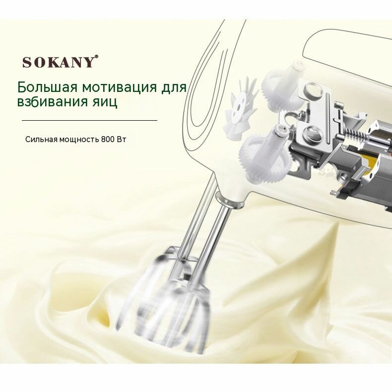Ручной миксер мощностью 800Вт, многоскоростной венчик , 5 скоростей , 2 насадки. Sokany 6621. Черный интересное:
