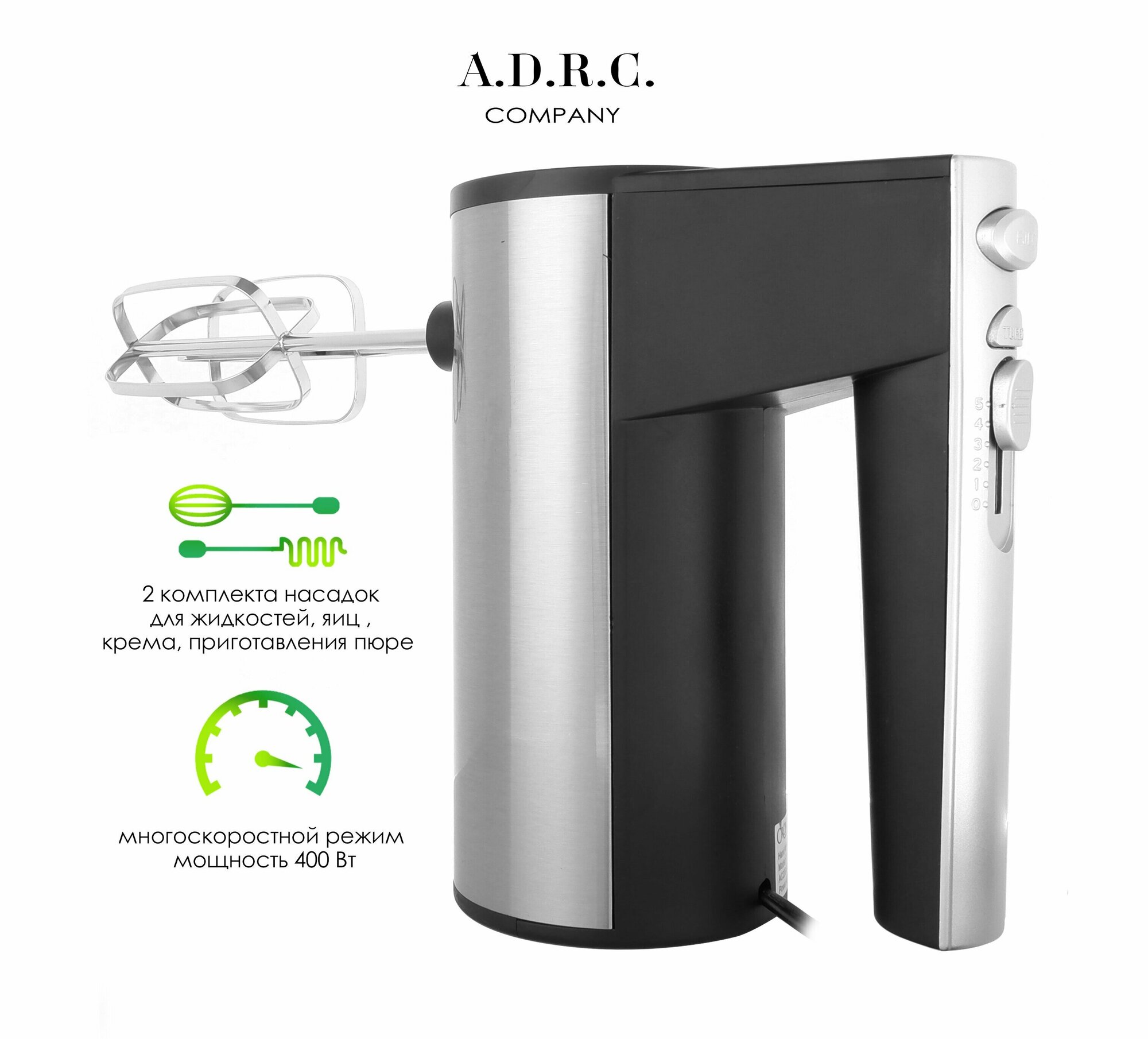 Миксер ручной/портативный/легкий электрический взбиватель яиц и крема/5 скоростей/400ВТ, 4 насадки/серый интересное: