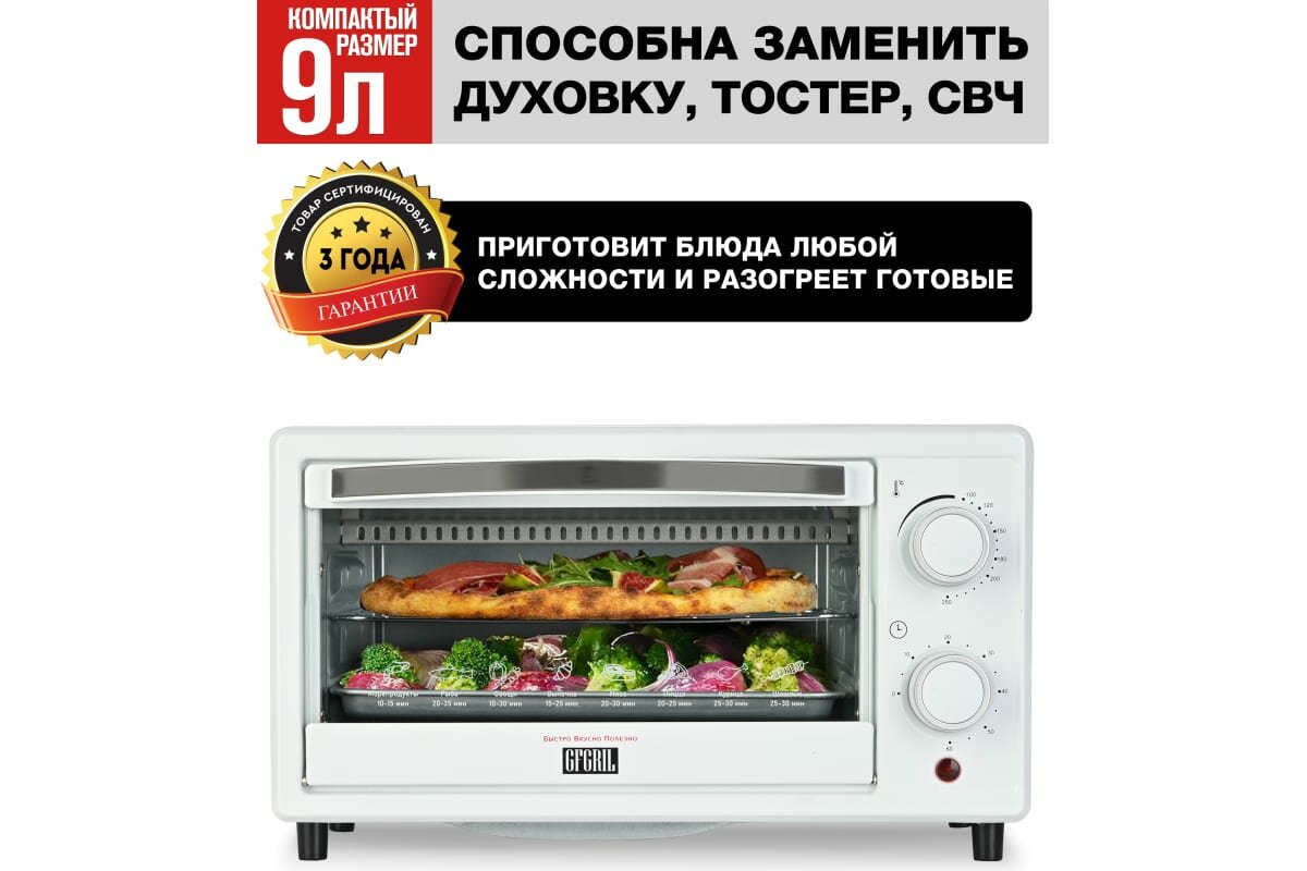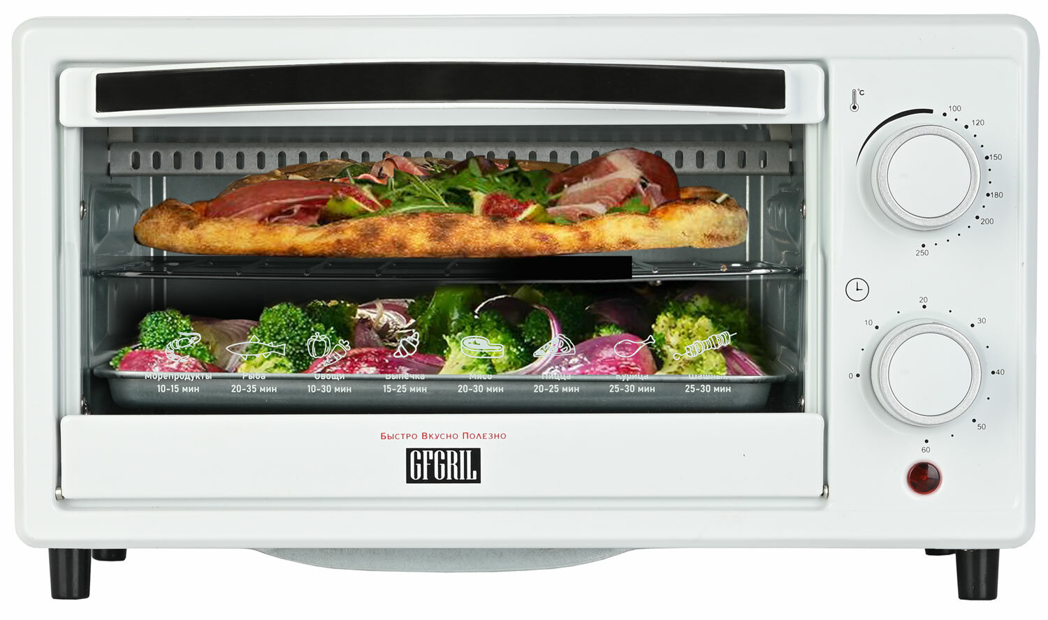 Купить GFGRIL Многофункциональная мини-печь GFO-09W, 9л,1000 Вт,температура до 250С, таймер на 60 мин, противень, решетка