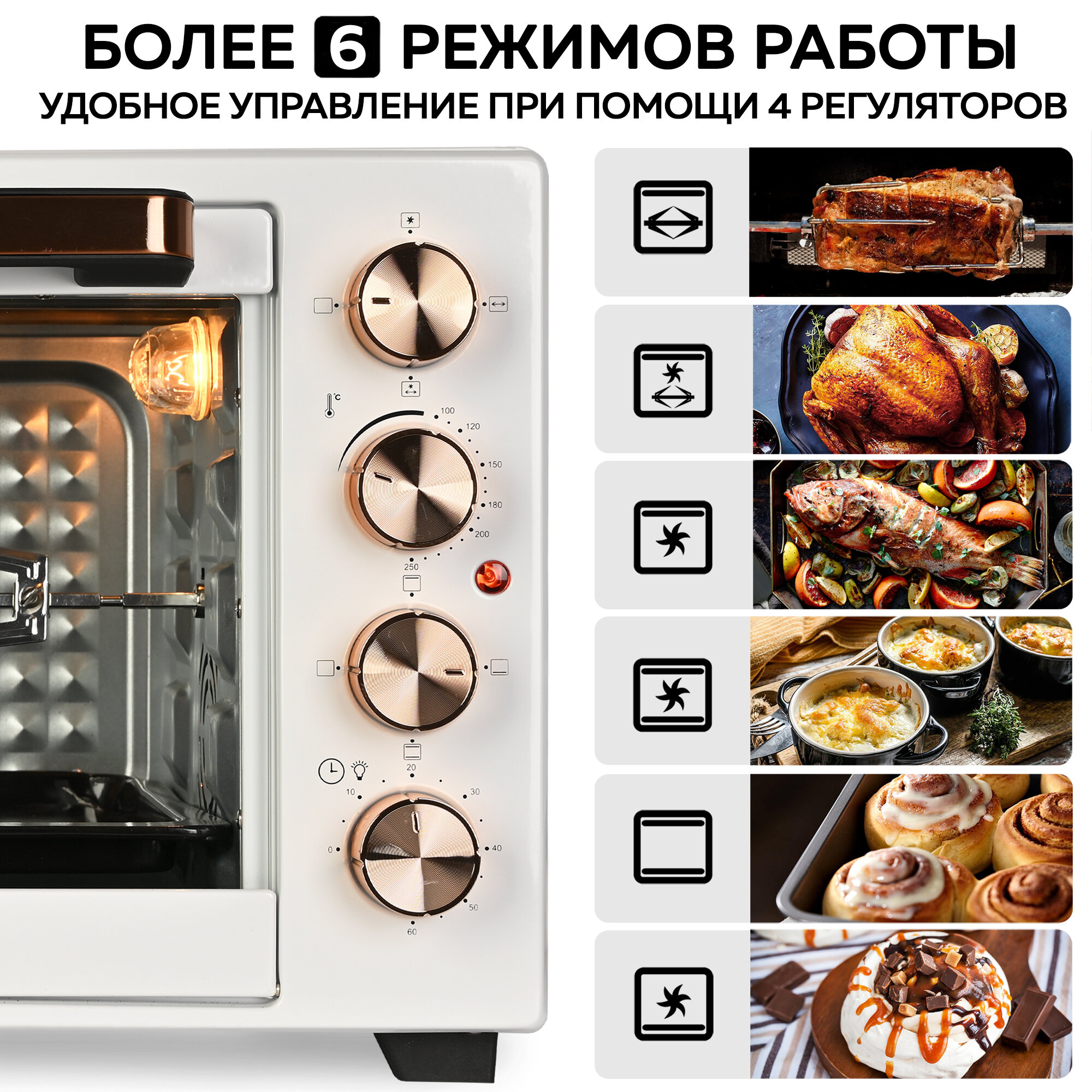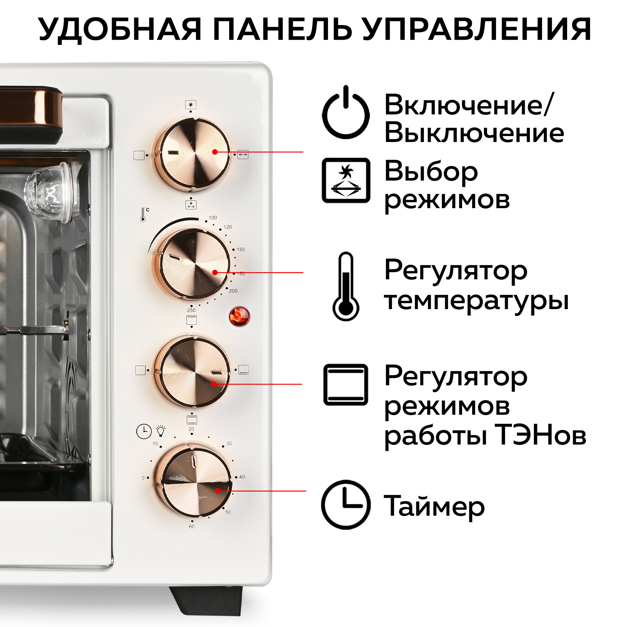 Купить GFGRIL Многофункциональная мини-печь GFO-38W, 38л, 1600 Вт, вертел, конвекция, таймер