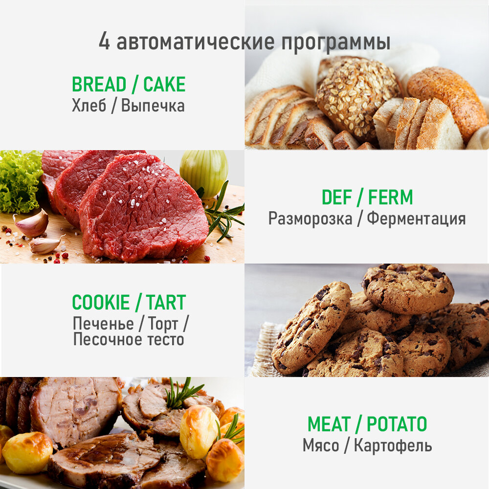 | Минусы: | Слабенький металл, при доставке чуть чуть была вмятина сзади печки, но не критично. Все режимы на английском, не понятно почему!!! нет никакой книги рецептов, даже не большой. |
