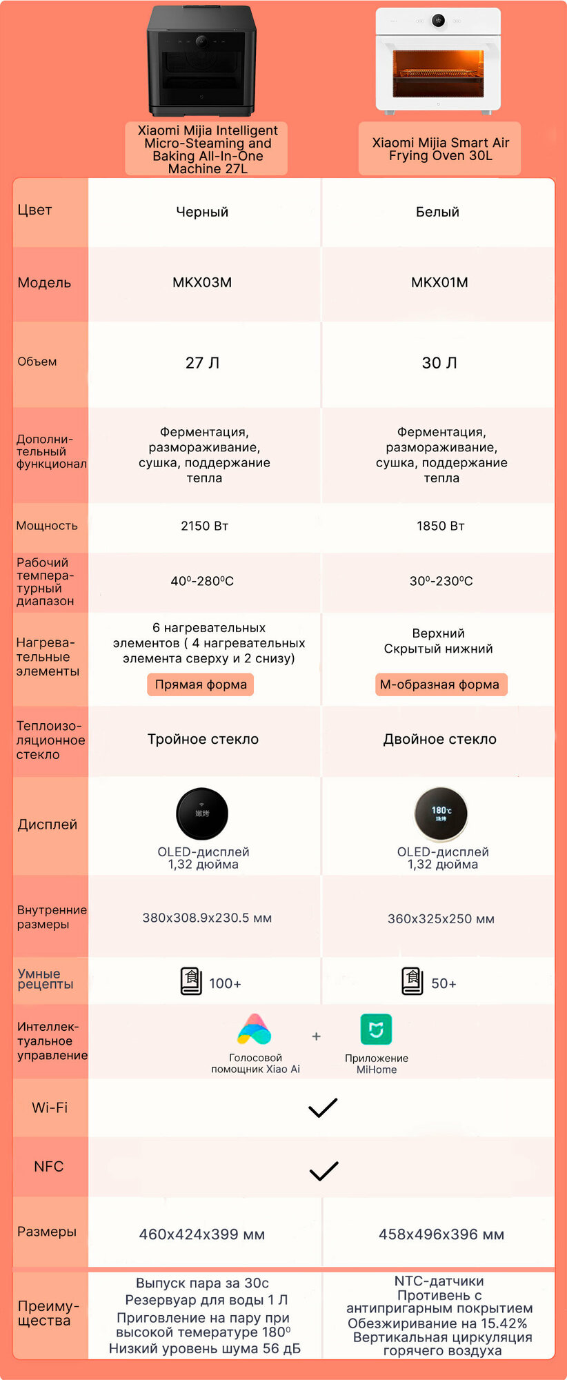 Умный электрический духовой шкаф Xiaomi Mijia Smart Air Frying Oven 30L (MKX01M) интересное: