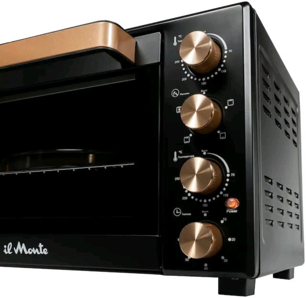 Духовка электрическая настольная, 40 л, Независимая регулировка температуры Верхнего и Нижнего ТЭНов, Конвекция, Автоотключение по таймеру, il Monte EO-4012