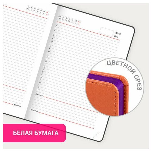 Ежедневник недатированный А5 138х213 мм BRAUBERG "Rainbow" под кожу, 136 л., оранжевый, 111668 В комплекте: 1шт.
