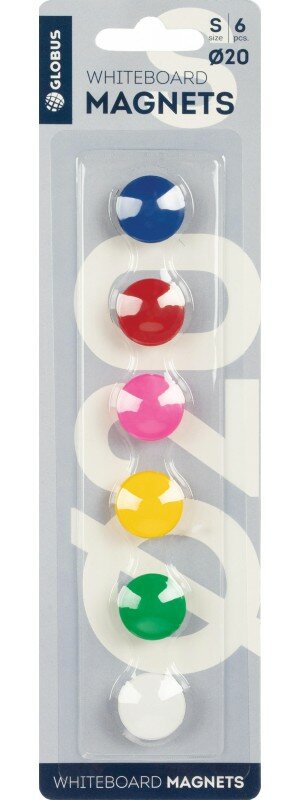 Магниты для досок Globus 20 мм, 6 штук, цветные, в блистере./В упаковке шт: 1