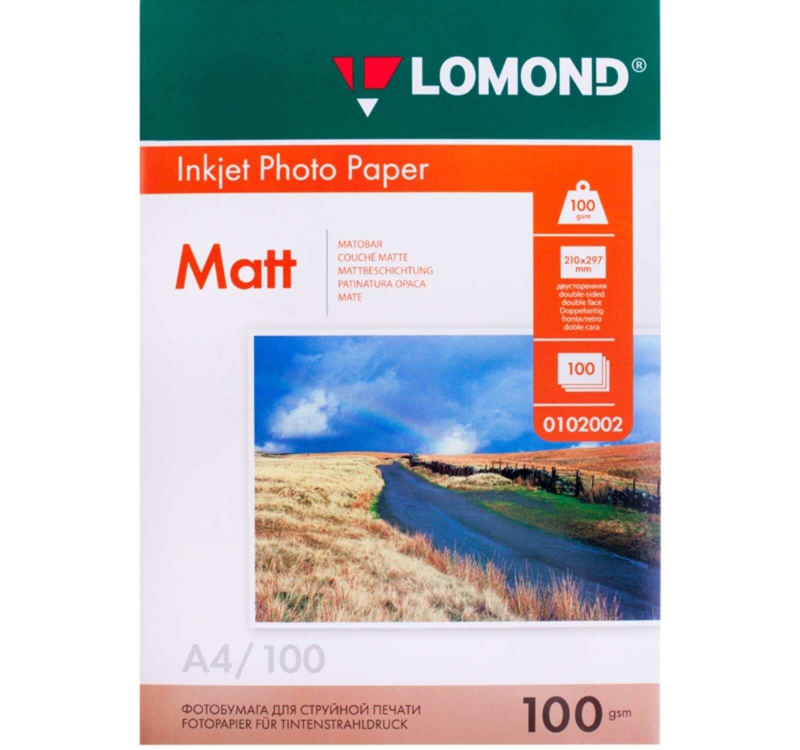 100 г/м², А4, Матовая двухсторонняя фотобумага, 100 листов Lomond 0102002