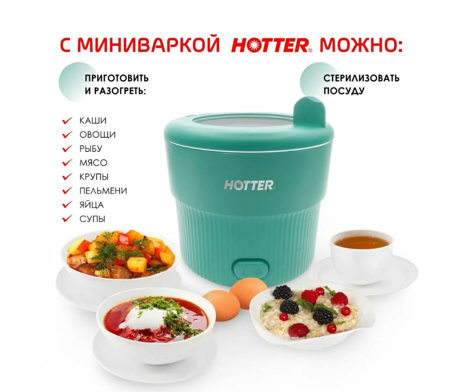 Ниже Вы можете прочитать отзывы на Мини-кастрюля электрическая HOTTER HX-808 бирюзовая, 1,2л, чаша с антипригарным покрытием, стеклянная крышка, 500W, ознакомится с подробными характеристиками, посмотреть интересные обзоры и фотографии на Мини-кастрюля электрическая HOTTER HX-808 бирюзовая, 1,2л, чаша с антипригарным покрытием, стеклянная крышка, 500W.
