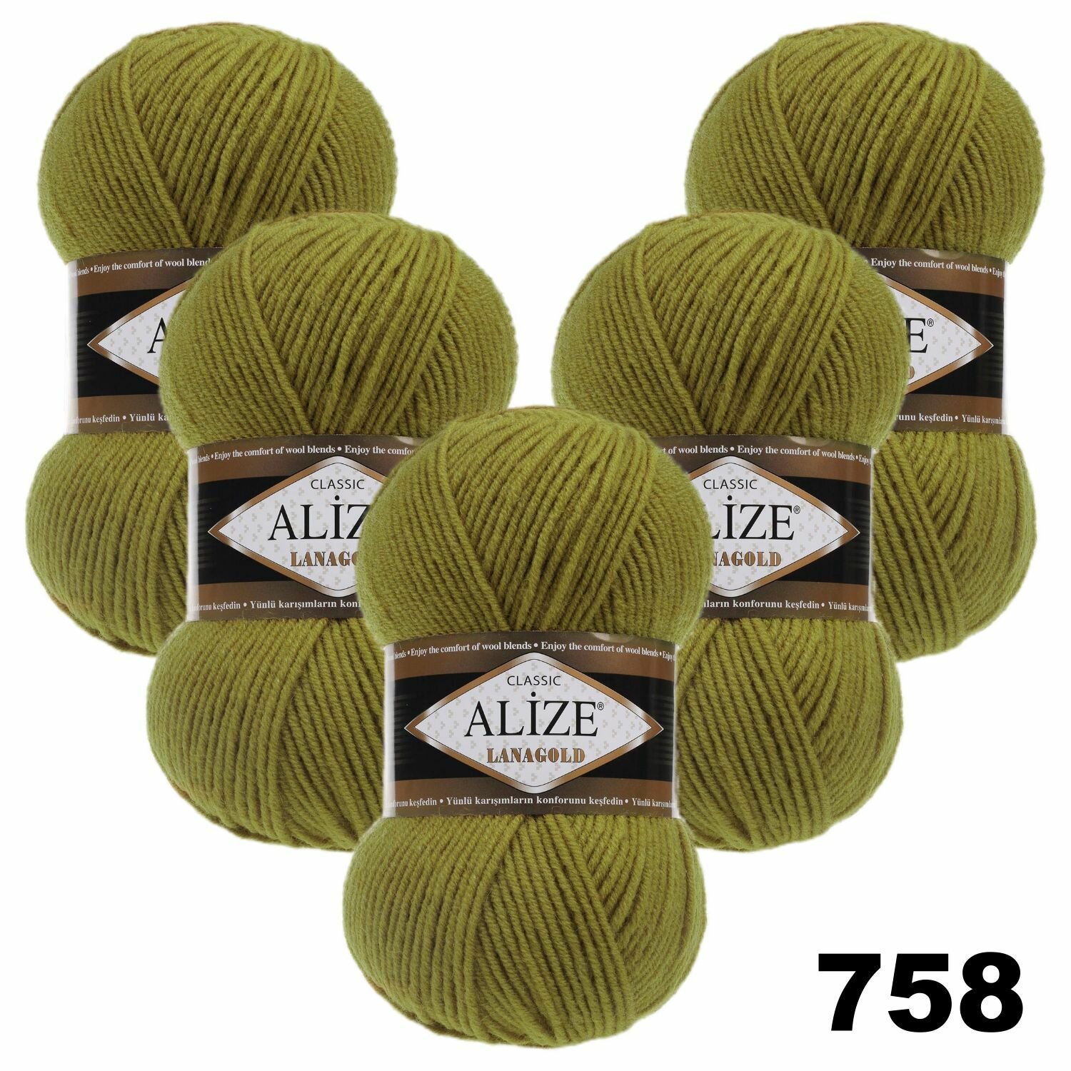 Купить Пряжа для вязания Alize Lanagold Classic 758 оливковый, 100 г, 240 м, 5 штук