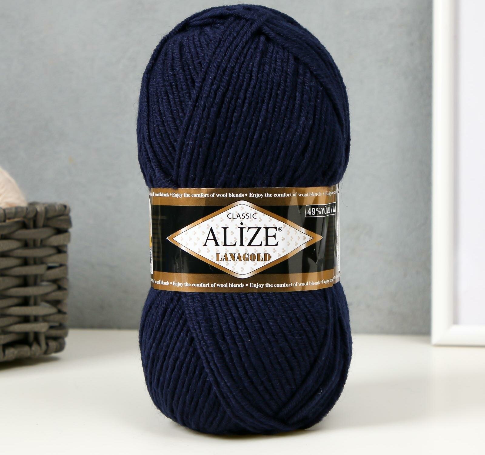 Пряжа для вязания Alize Lanagold, цвет 58 темно-синий, 100г, 240м, 5шт/упак