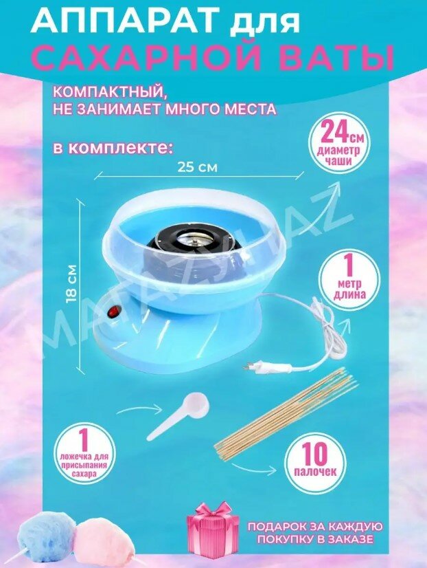 Аппарат для приготовления сахарной ваты/домашний аппарат для сахарной ваты/для детей,праздников,синий интересное: