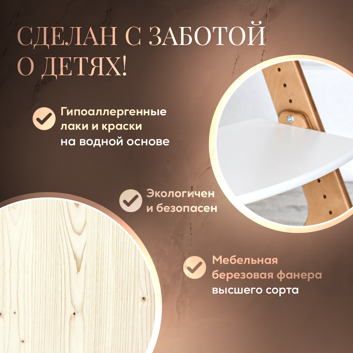 | Минусы: | Не удобно ребенку самостоятельно садиться. Нужно отодвинуть от стола, посадить, затем придвинуть |