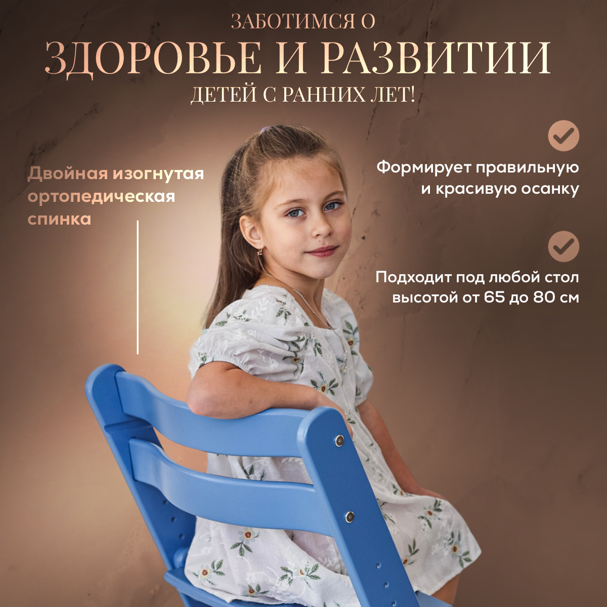 Растущий стул для детей, детский деревянный стульчик для школьника Конек Горбунек Комфорт, цвет Синий