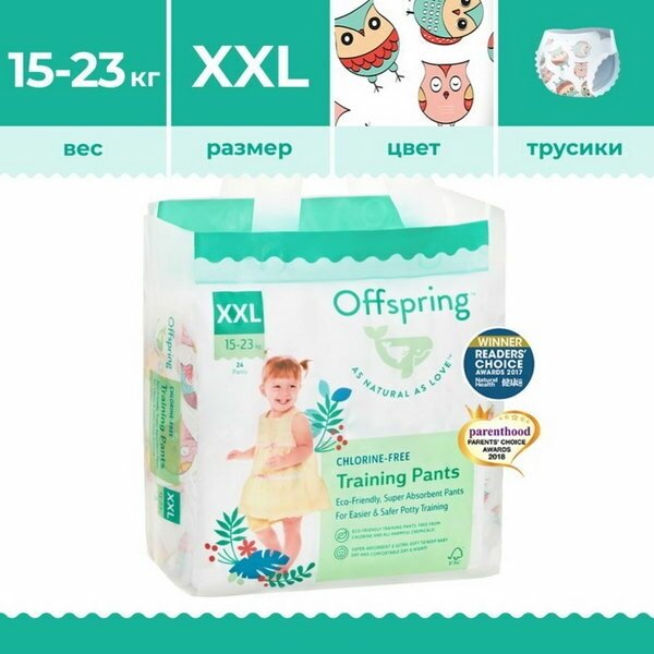 Ниже Вы можете прочитать отзывы на Offspring трусики XXL (15-23 кг), 24 шт., совы, ознакомится с подробными характеристиками, посмотреть интересные обзоры и фотографии на Offspring трусики XXL (15-23 кг), 24 шт., совы.