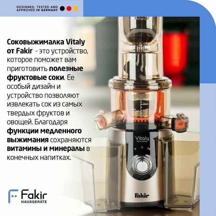 Соковыжималка Шнековая Fakir Vitaly с реверсом - 200 Вт, 60 об/мин интересное: