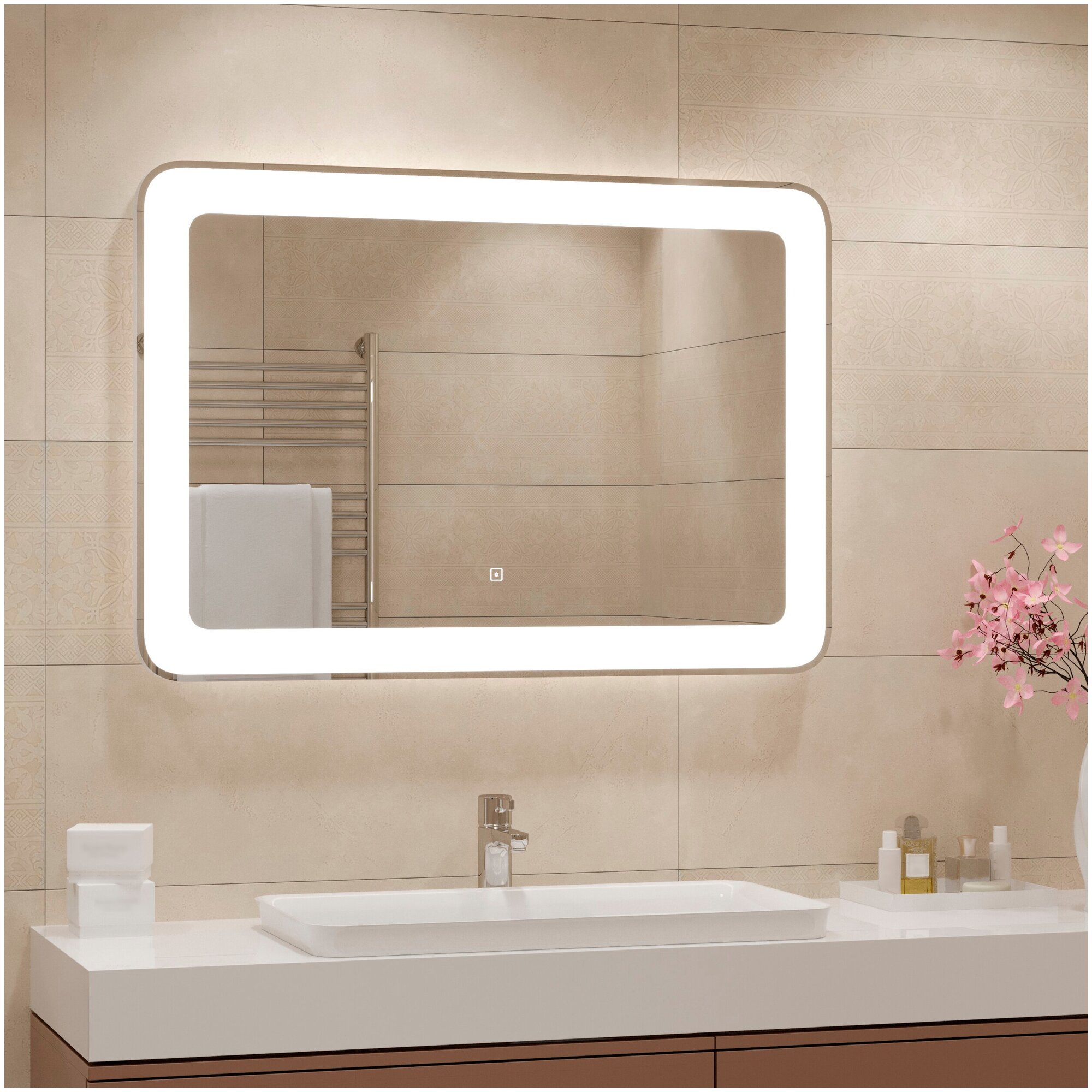 Зеркало настенное для ванной КерамаМане 70*100 см с холодной подсветкой 6000 К с сенсорной кнопкой