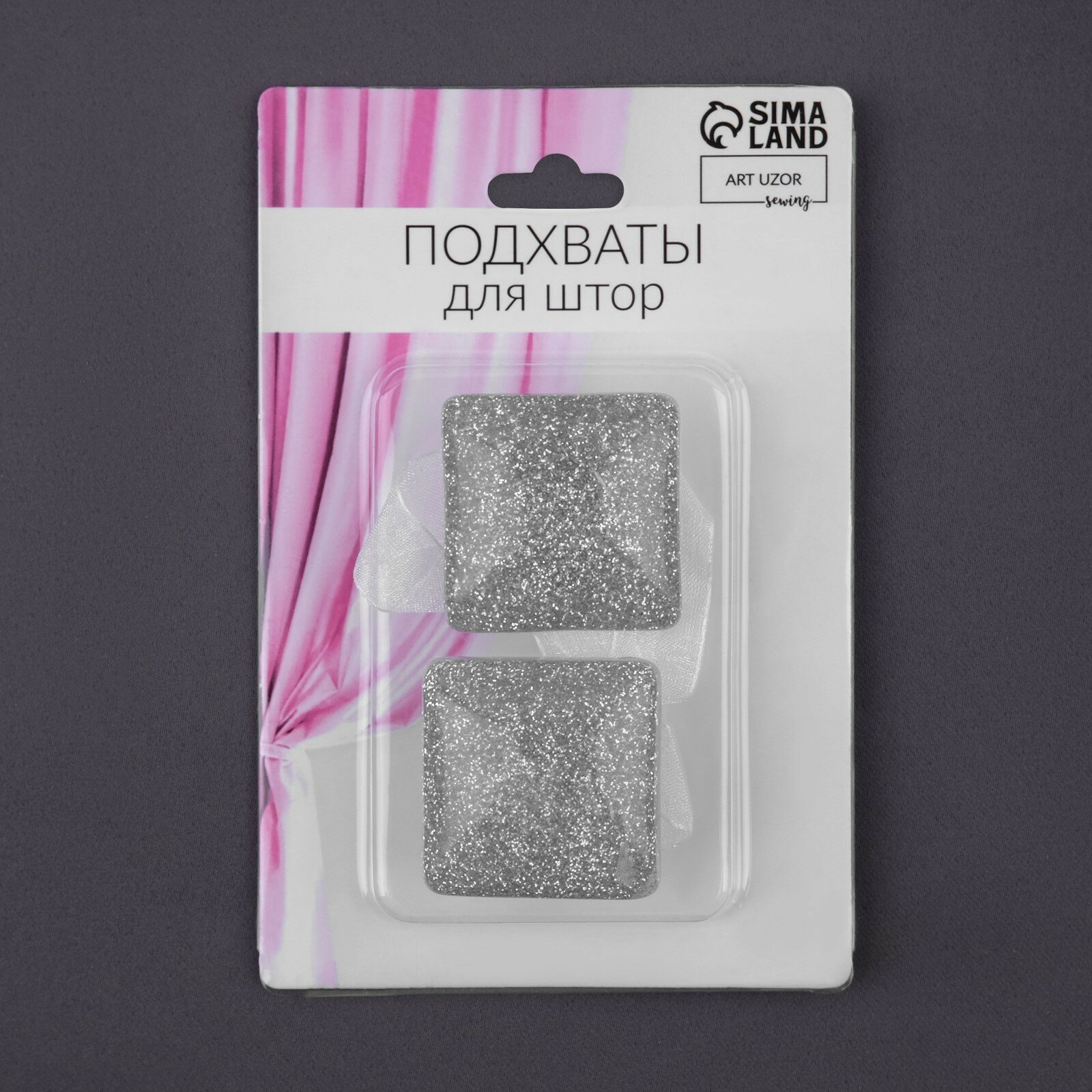 Подхват для штор "Квадрат с блёстками", 3.5 x 3.5 см, цвет серебряный, 2 шт.