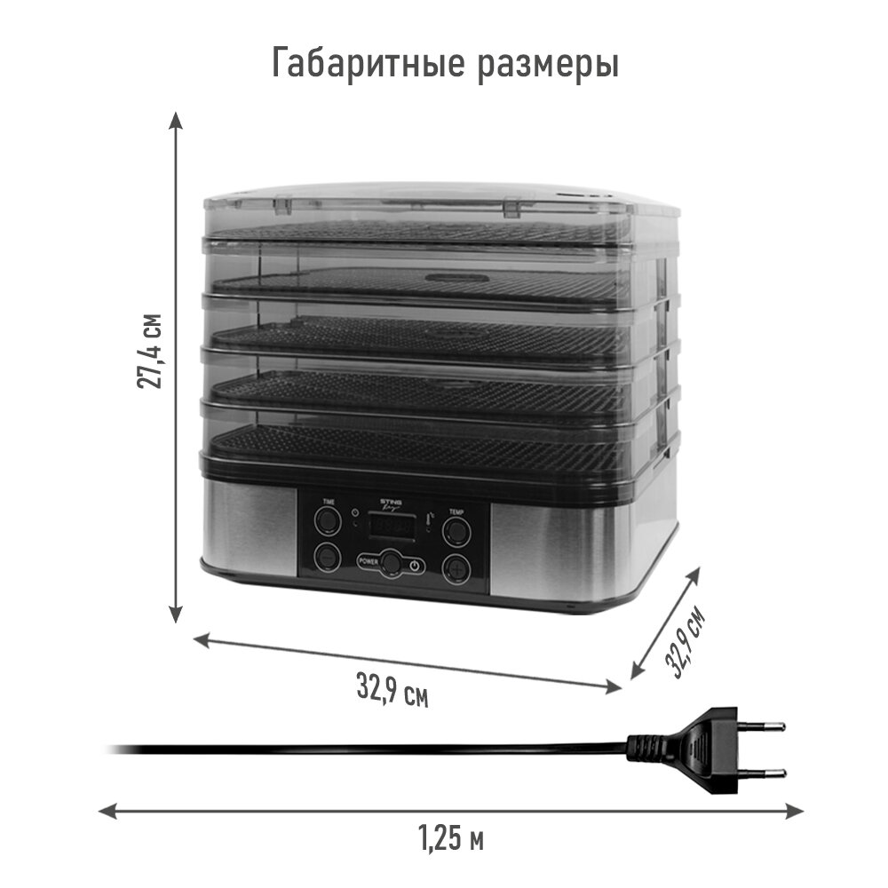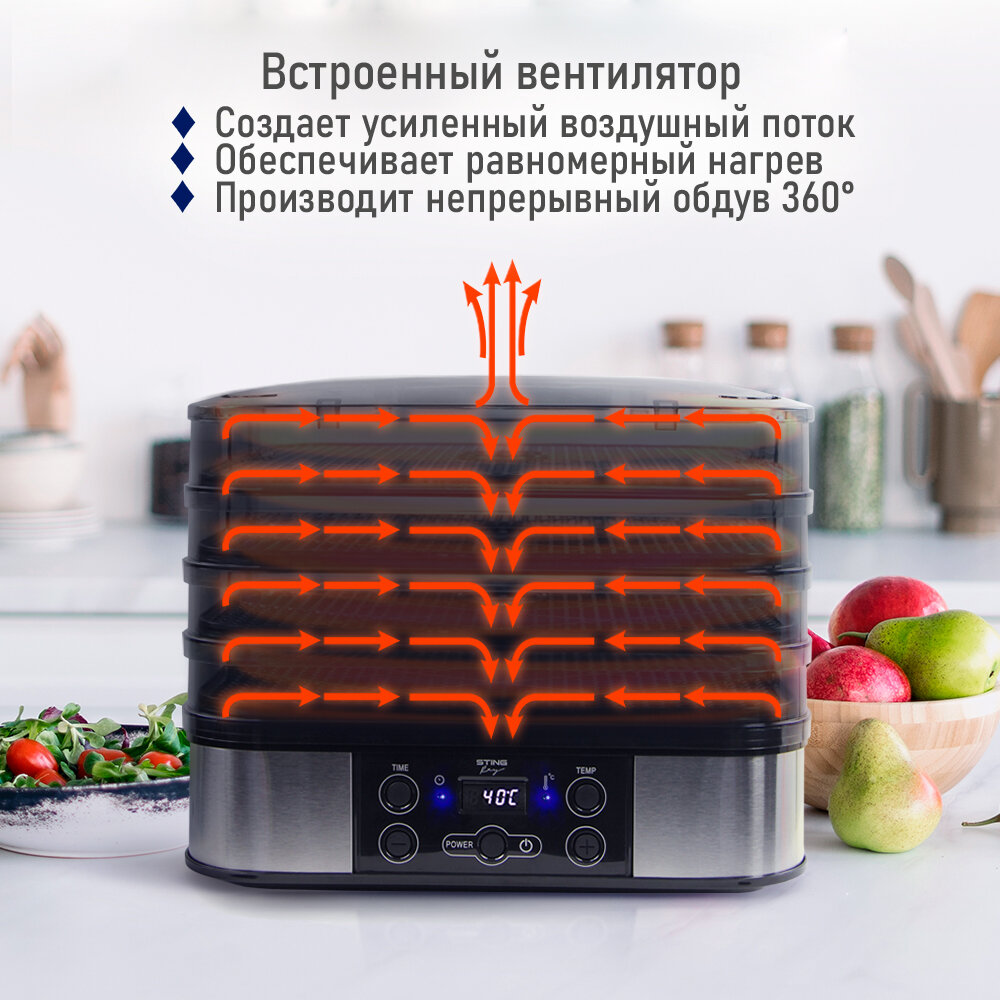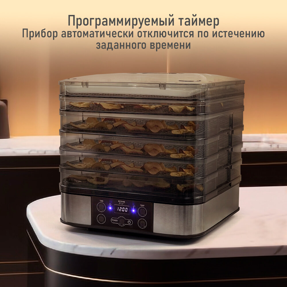 Купить Электросушилка STINGRAY ST-FD700A 8 поддонов: 4 разборных поддона для сушки, 2 для ягод, 2 для пастилы черный жемчуг