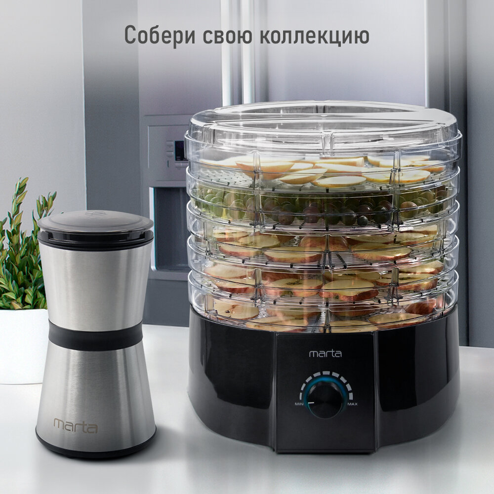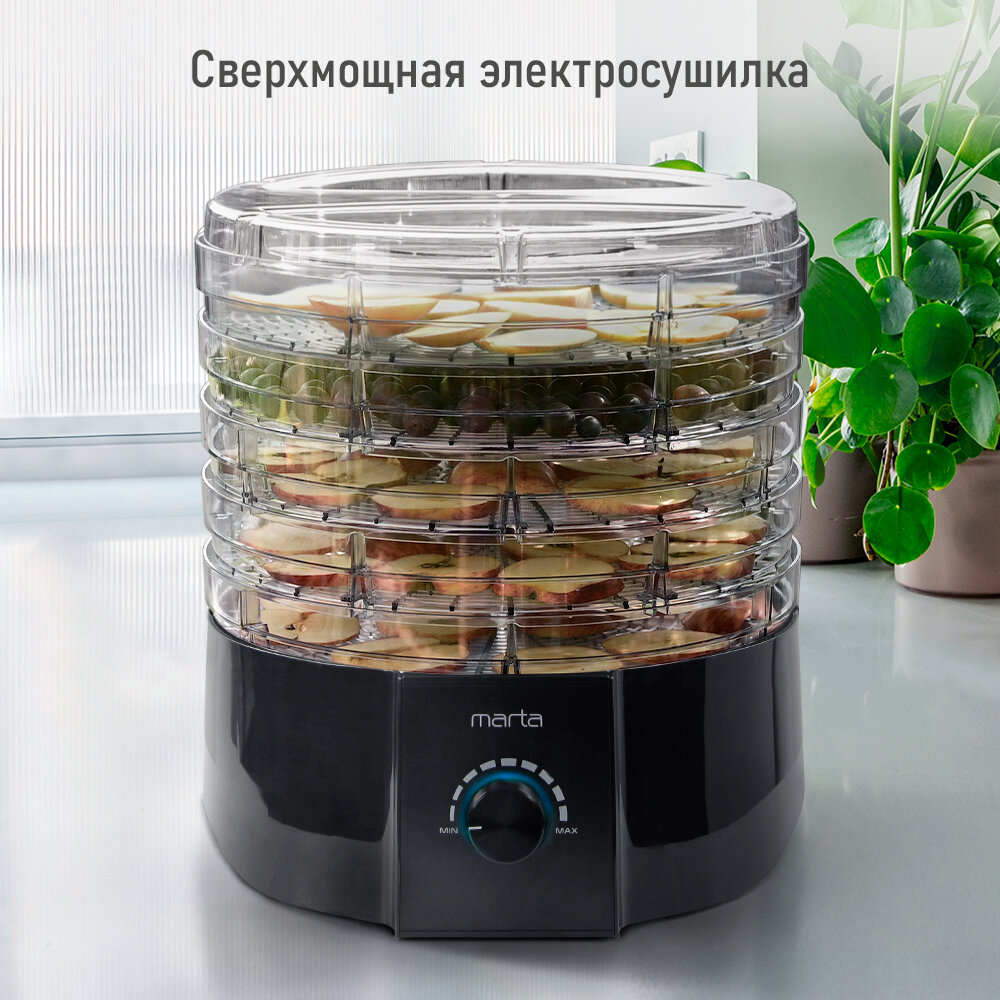 Купить Электросушилка MARTA MT-FD1889B 7 поддонов (5+1 для пастилы+1 для ягод) черный жемчуг