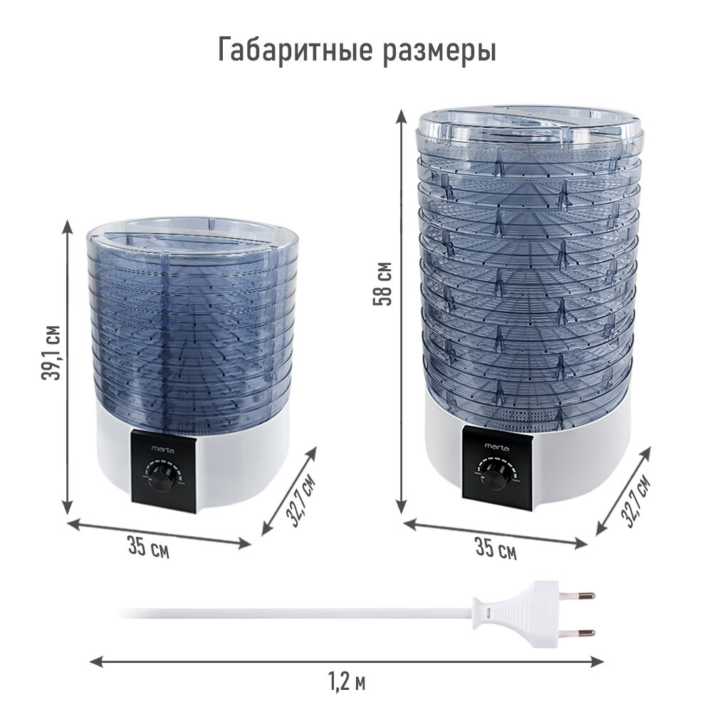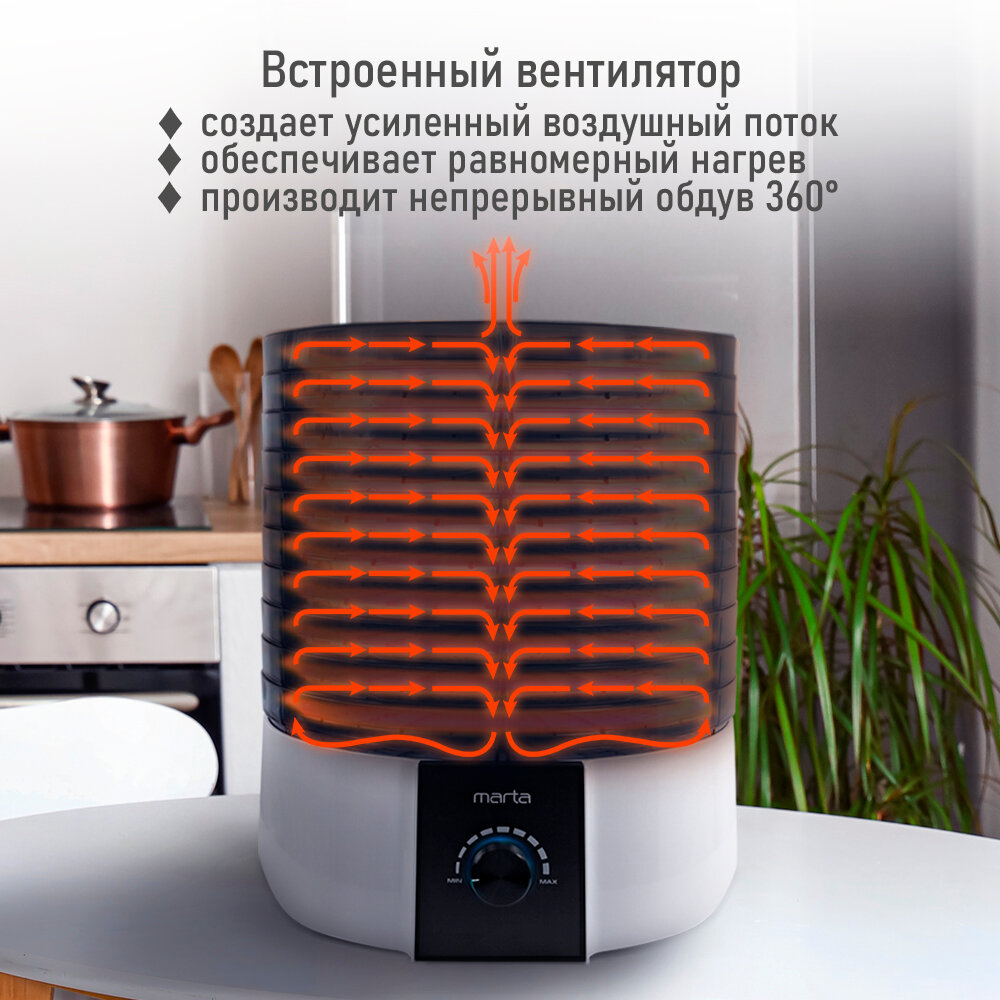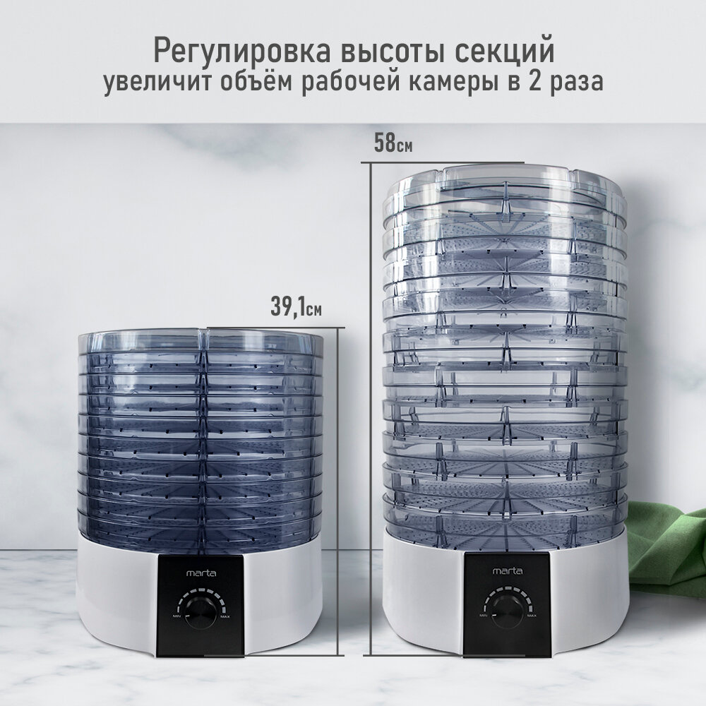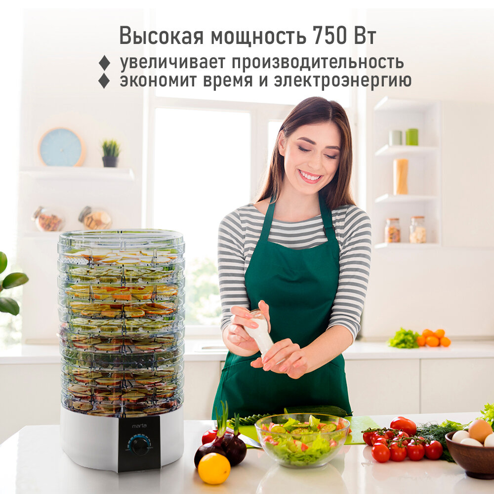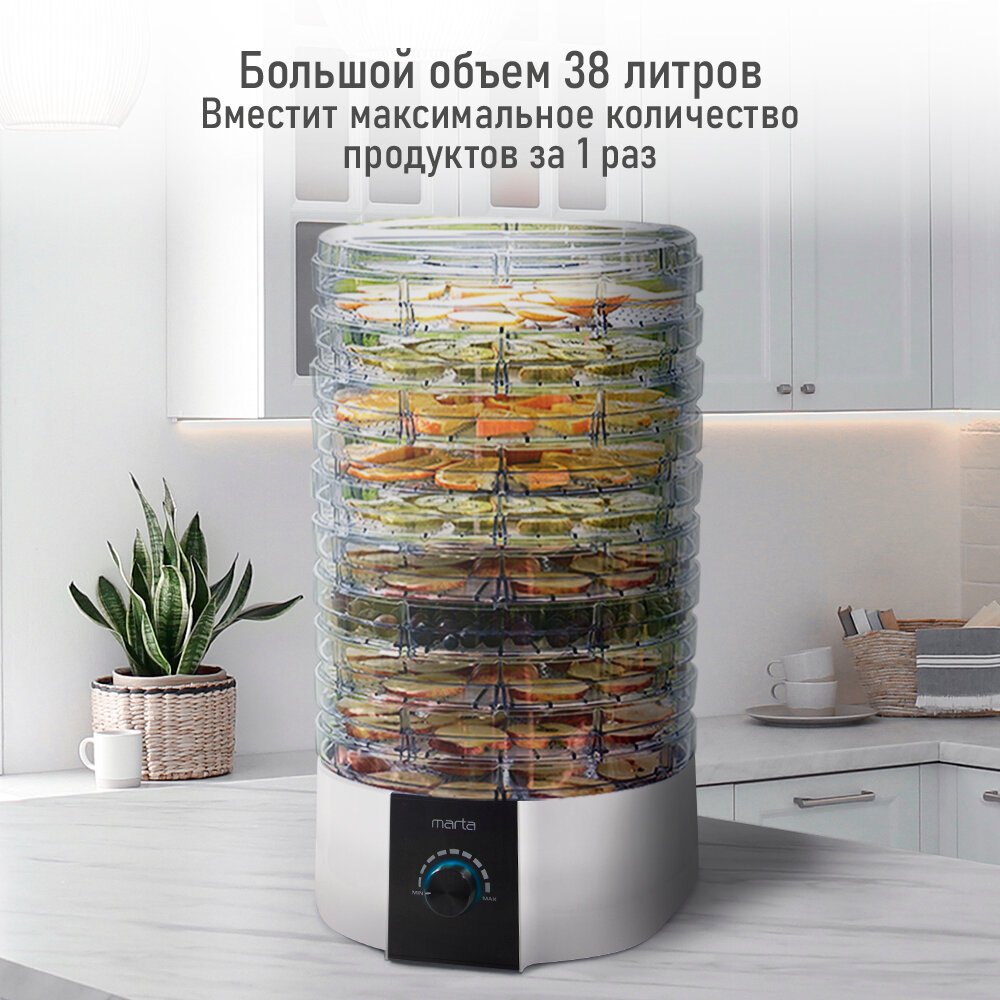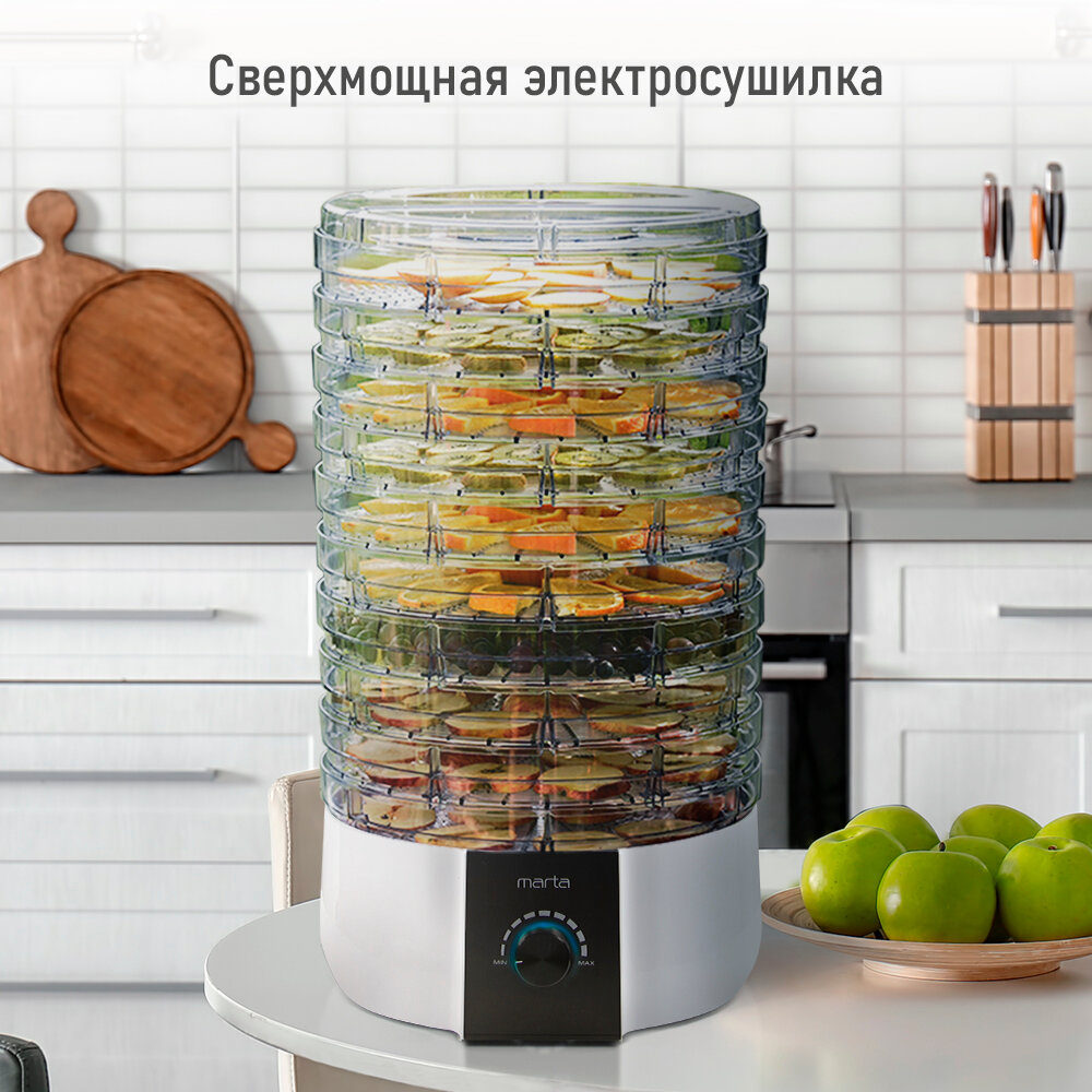 Электросушилка MARTA MT-FD1889G 12 поддонов (10+1 для пастилы+1 для ягод) белый жемчуг интересное: